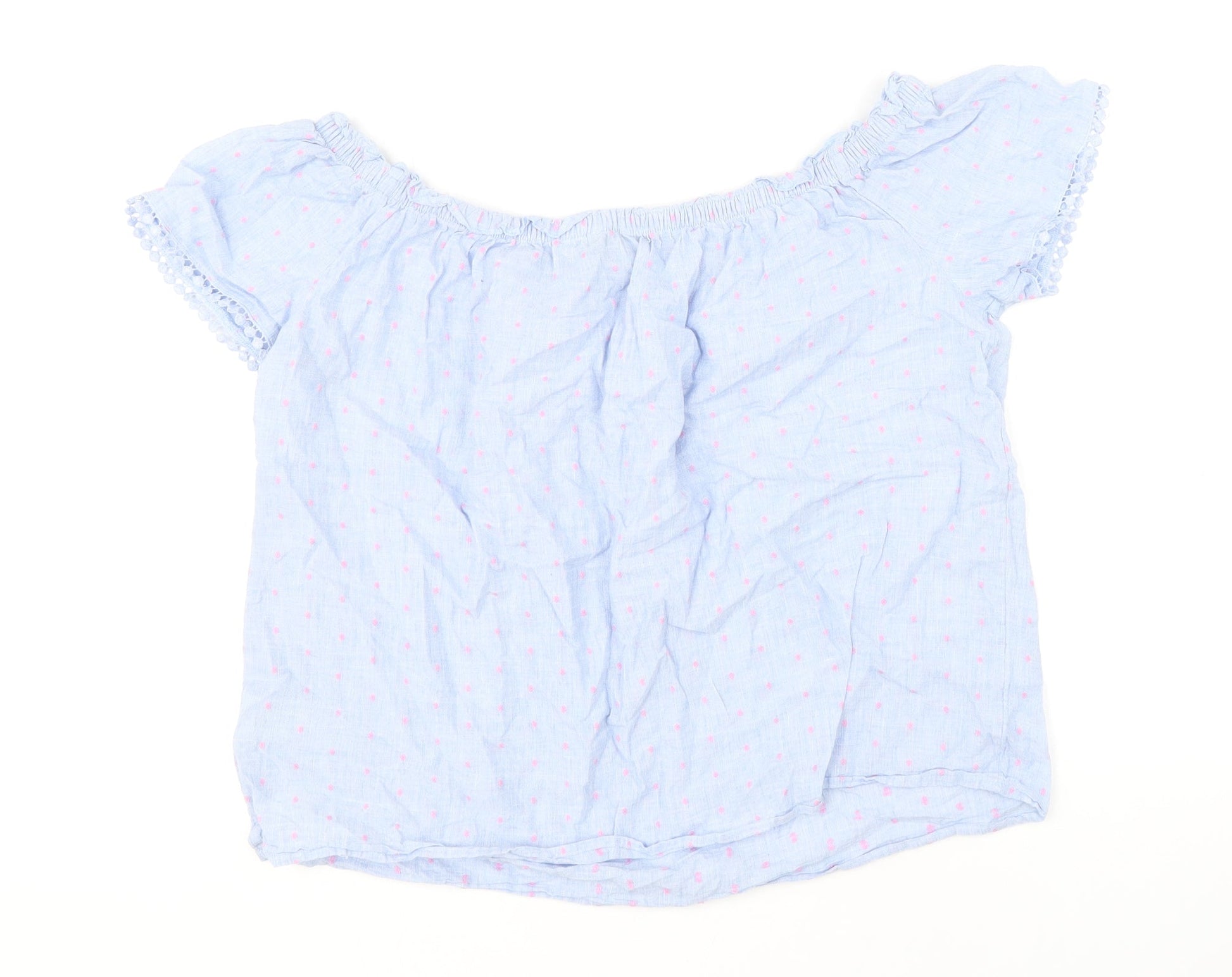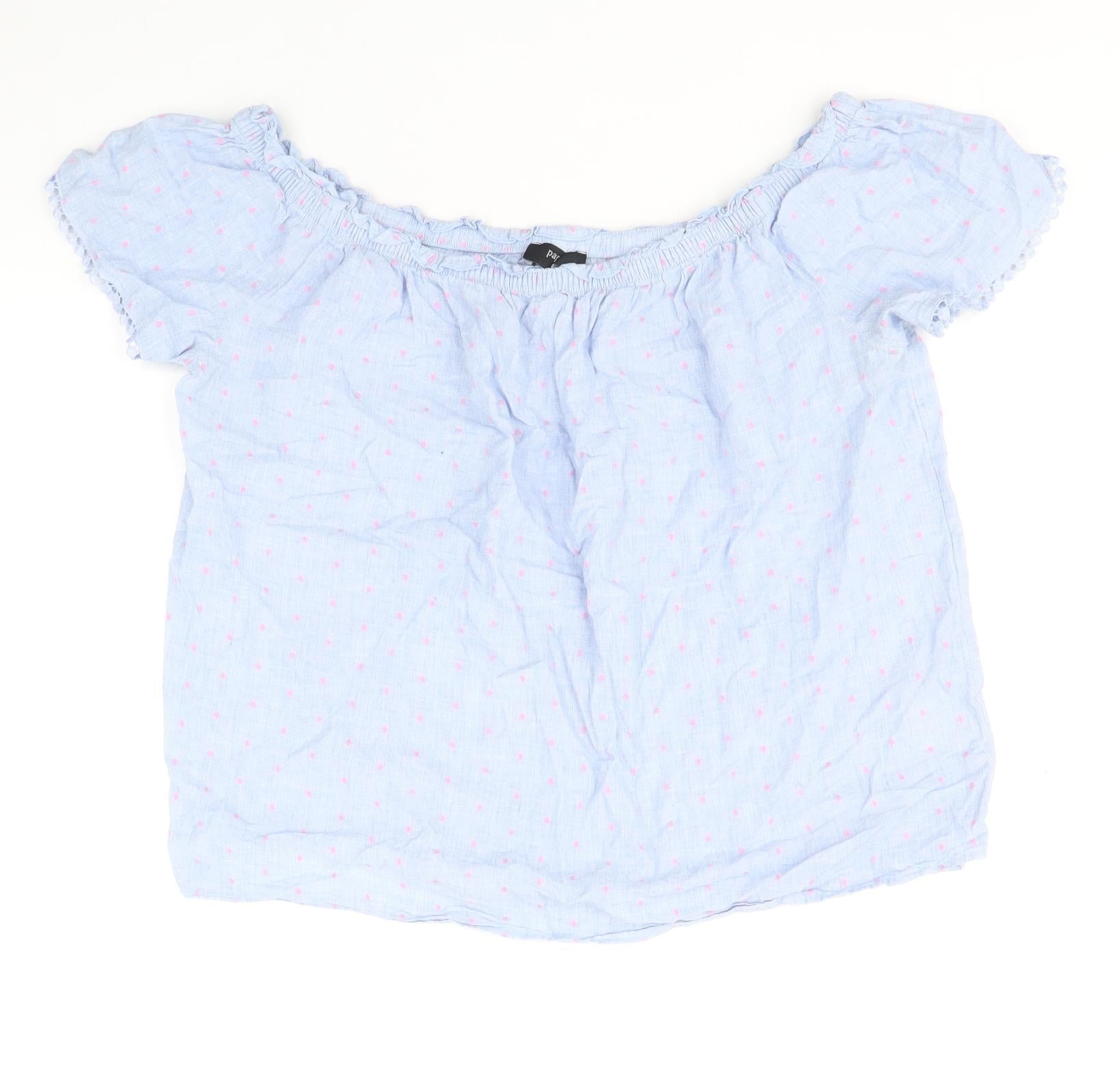 Papaya Womens Blue Polka Dot 100% Cotton Basic Blouse Size 14 Boat Neck