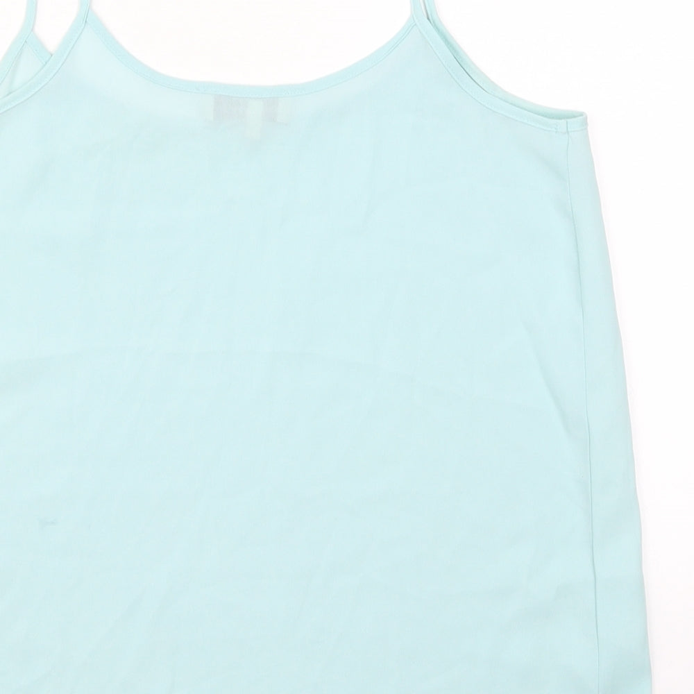 Papaya Womens Blue Polyester Basic Tank Size 10 Scoop Neck