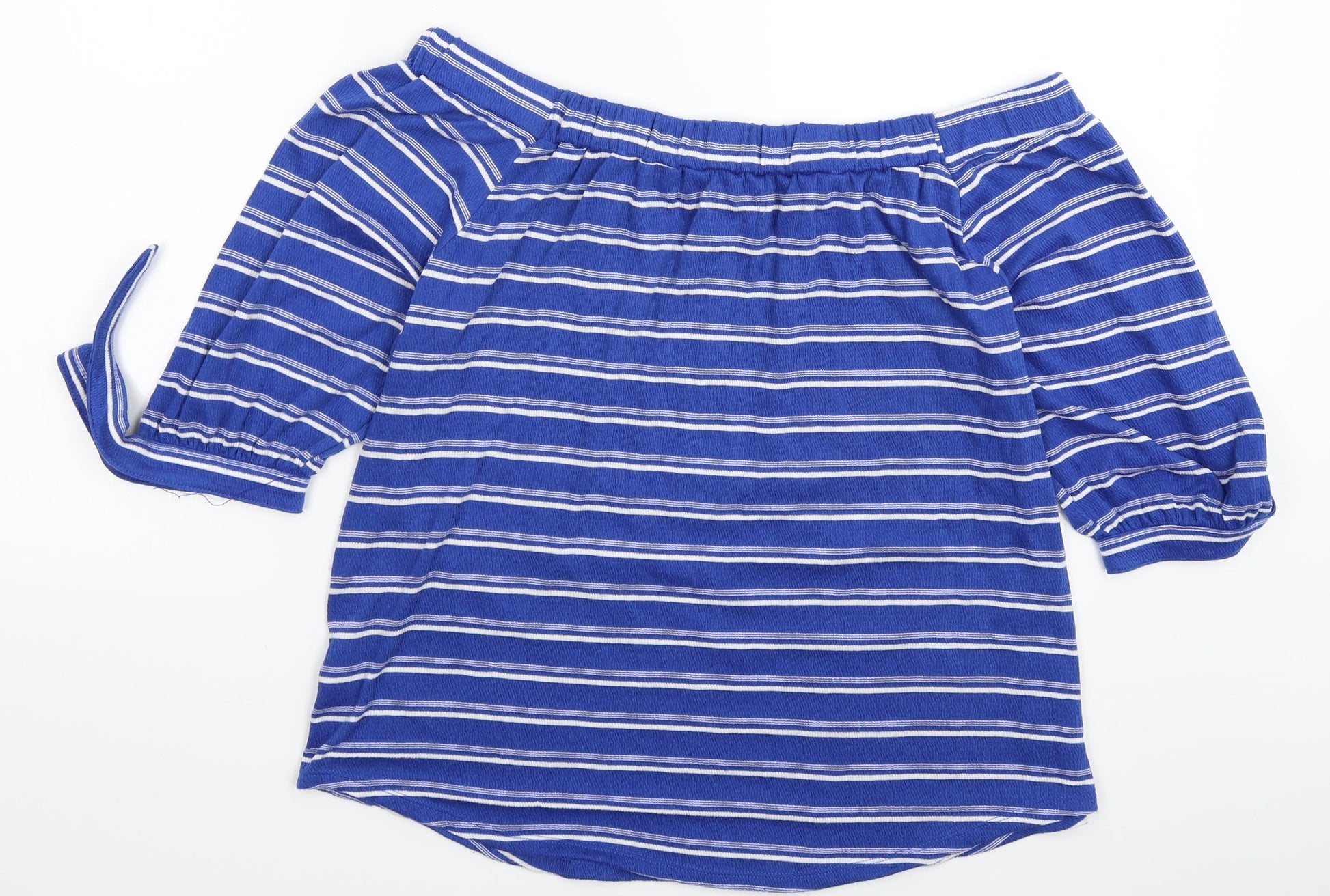 Papaya Womens Blue Striped Basic T-Shirt Size 16