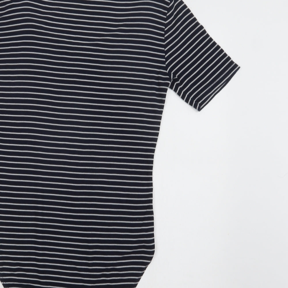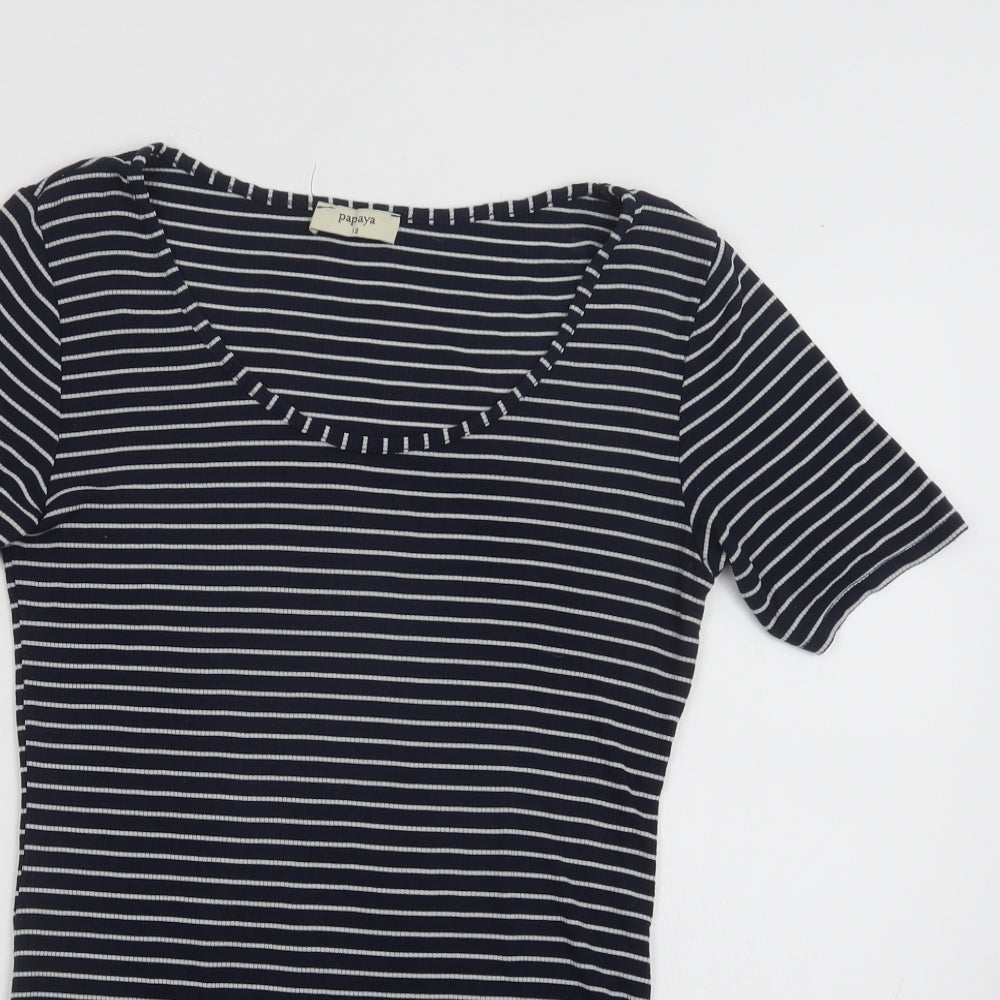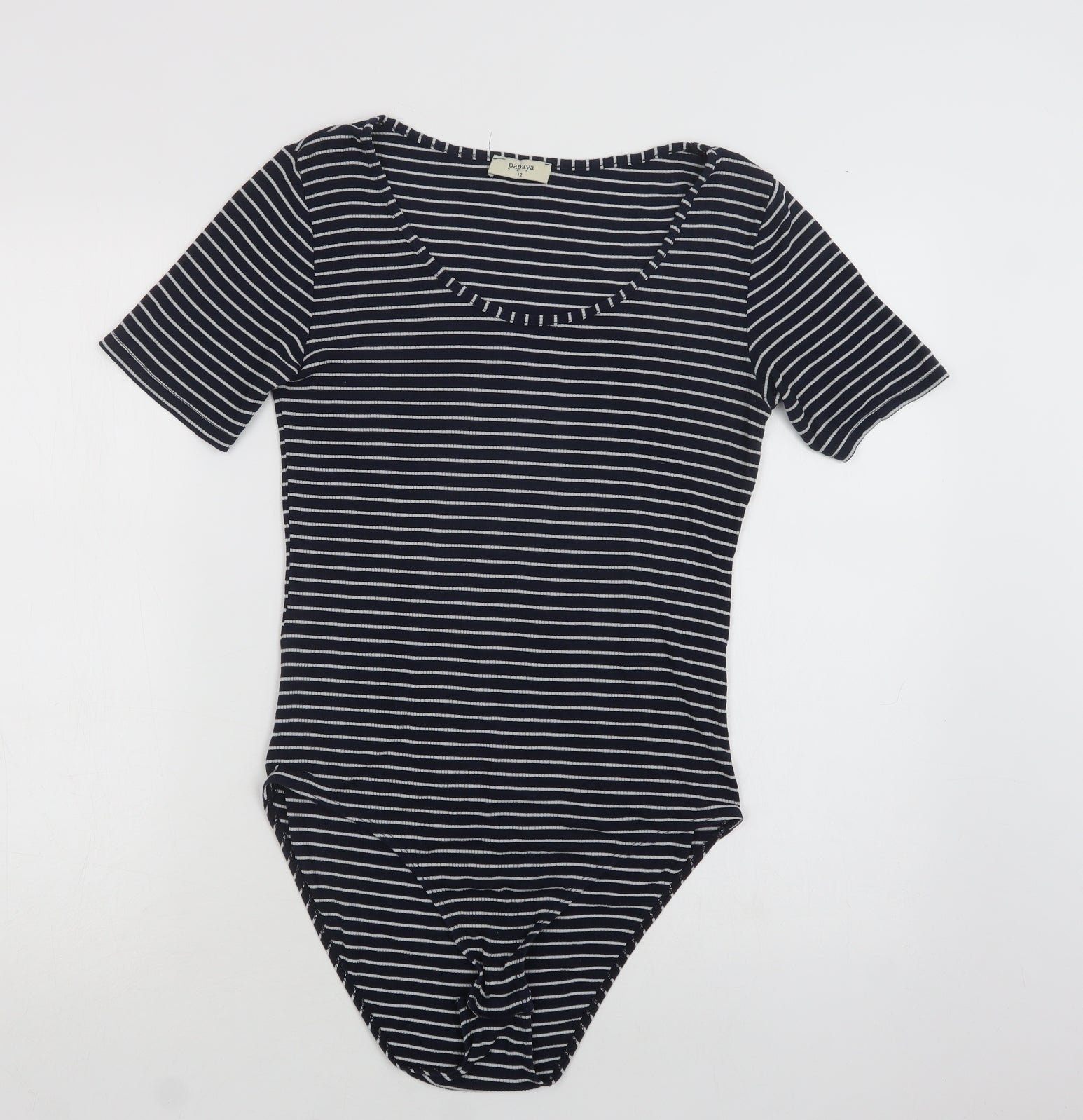 Papaya Womens Blue Striped Viscose Bodysuit One-Piece Size 12 Snap