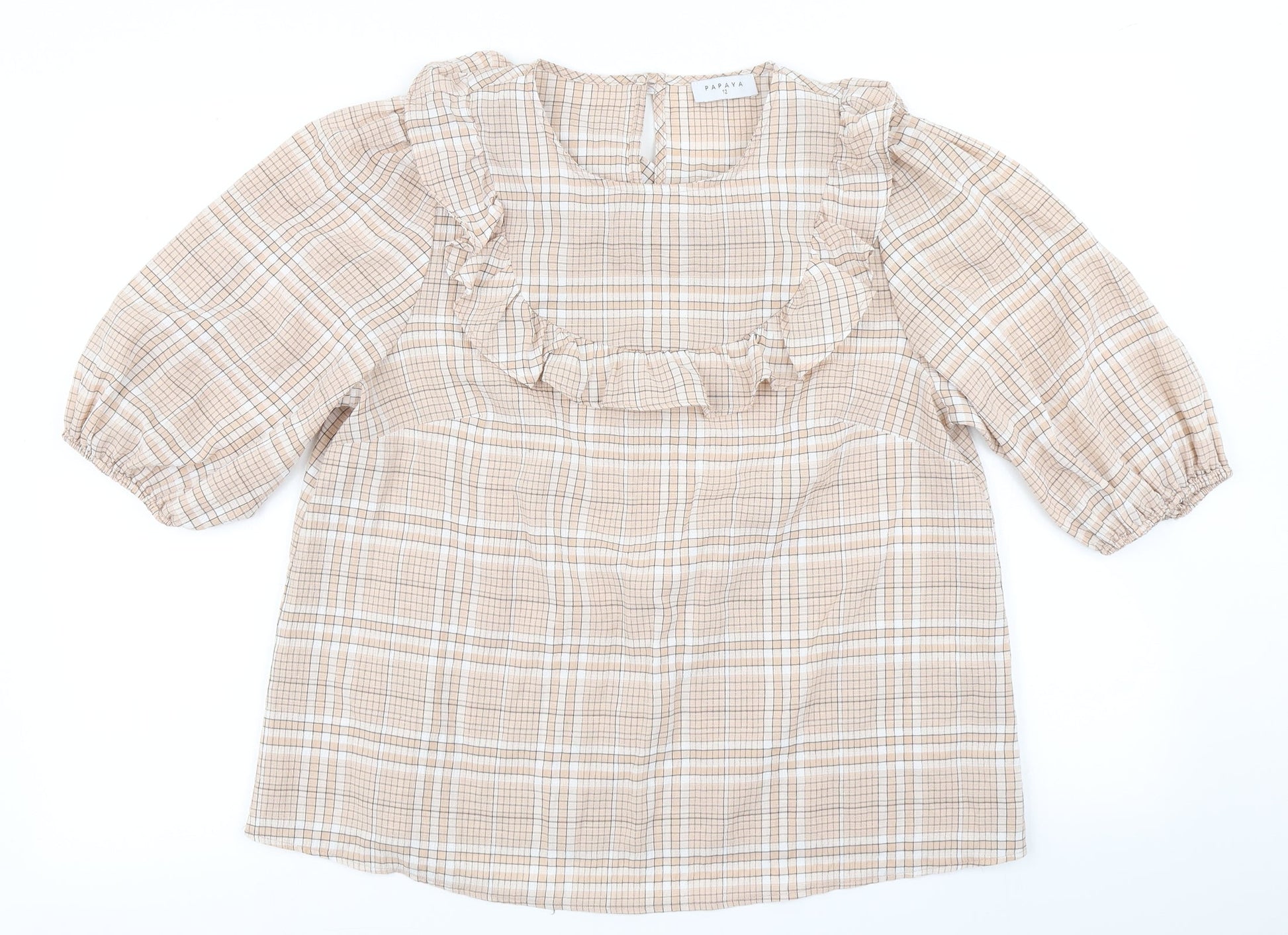 Papaya Womens Brown Plaid Basic Blouse Size 12