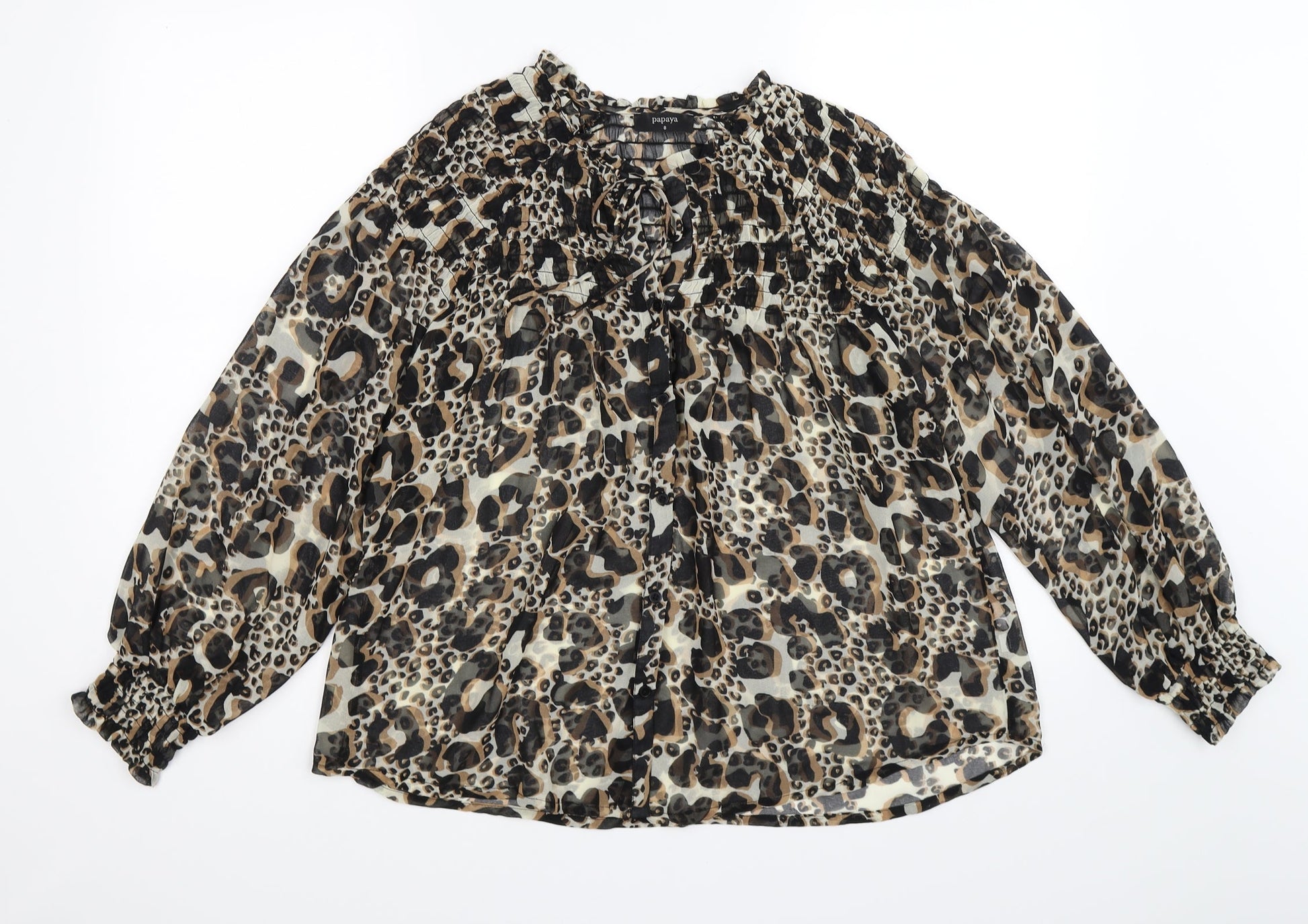 Papaya Womens Brown Polka Dot Chiffon Basic Blouse Size 8