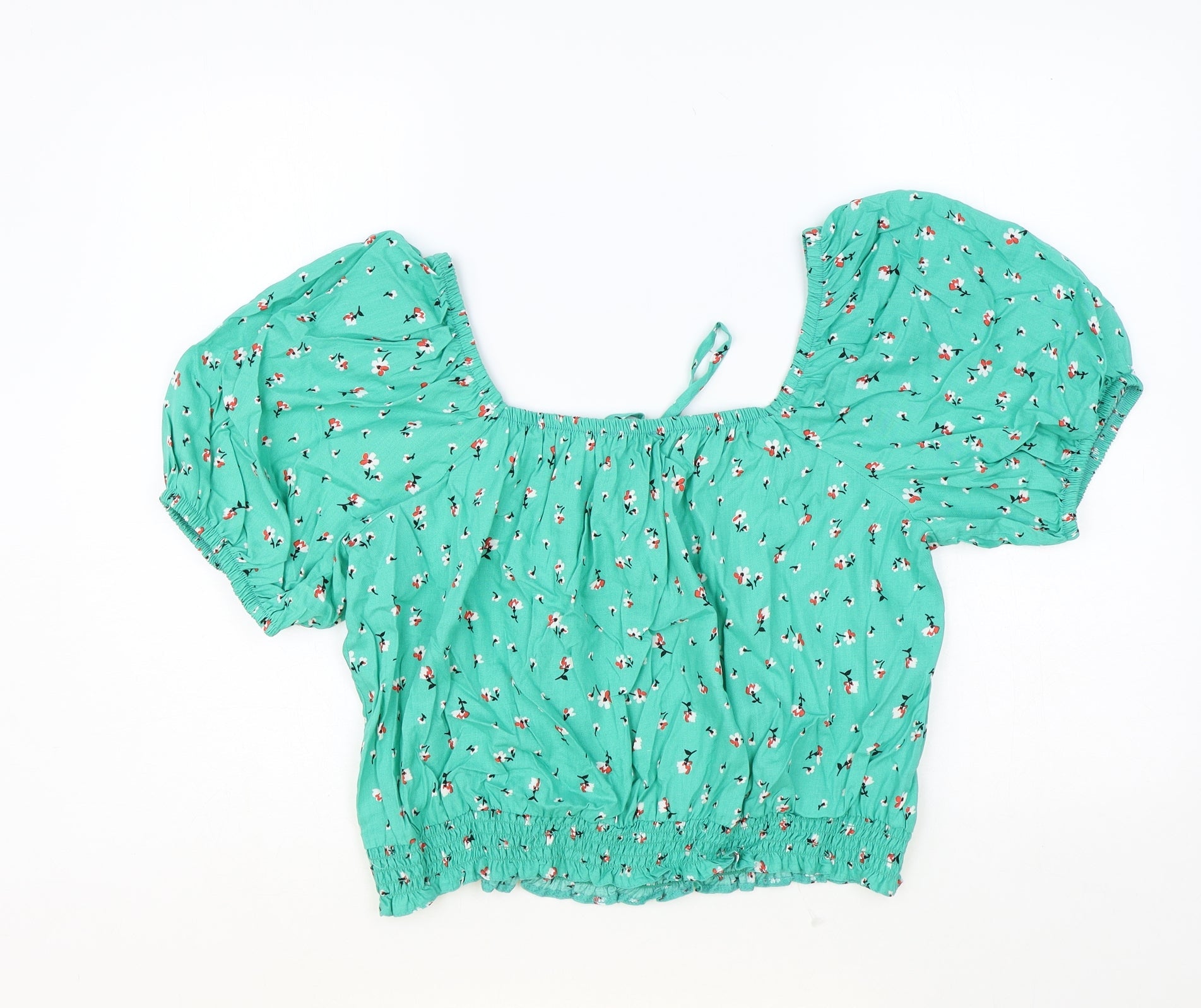 Papaya Womens Green Floral Polyester Cropped T-Shirt Size 16 Square Neck