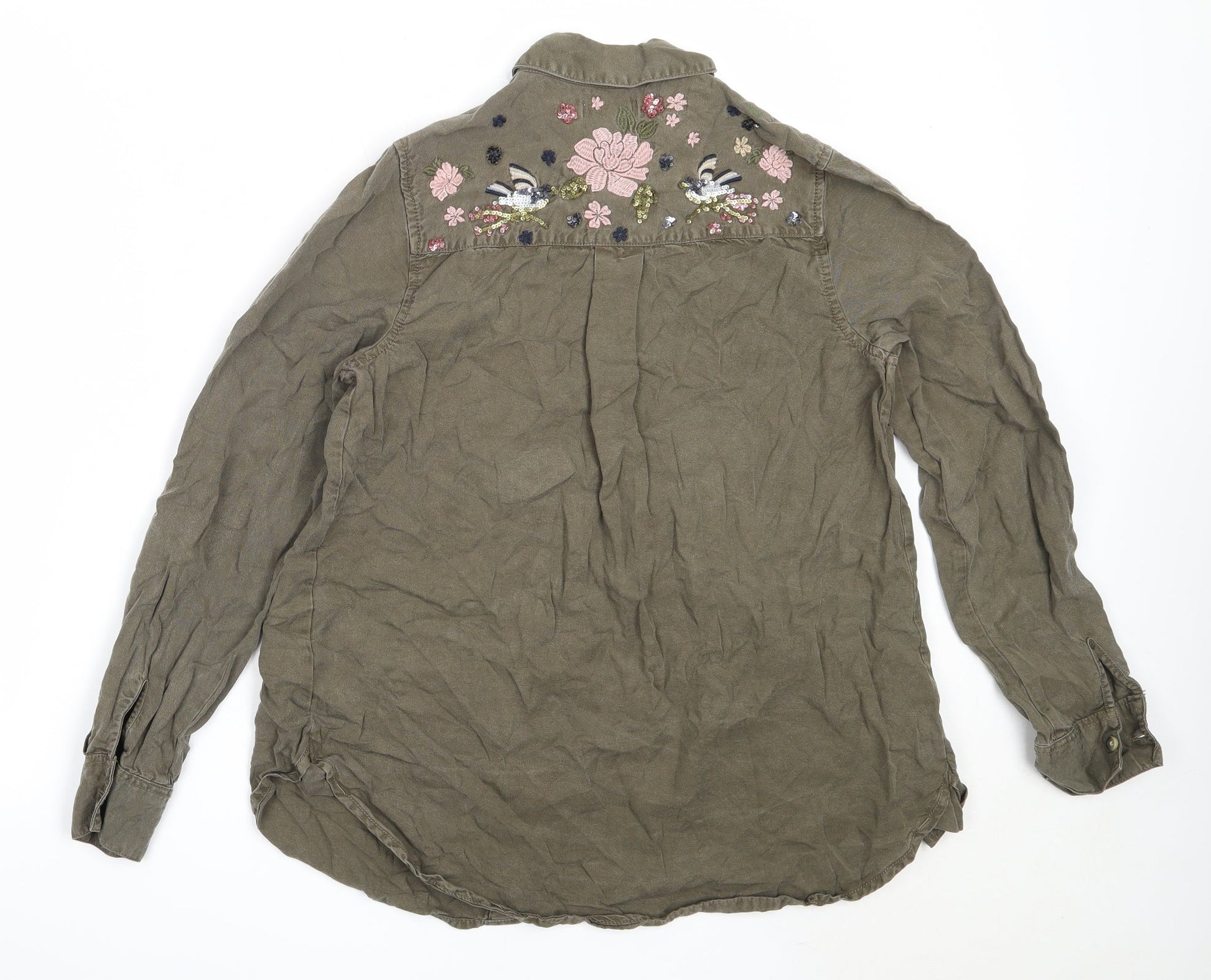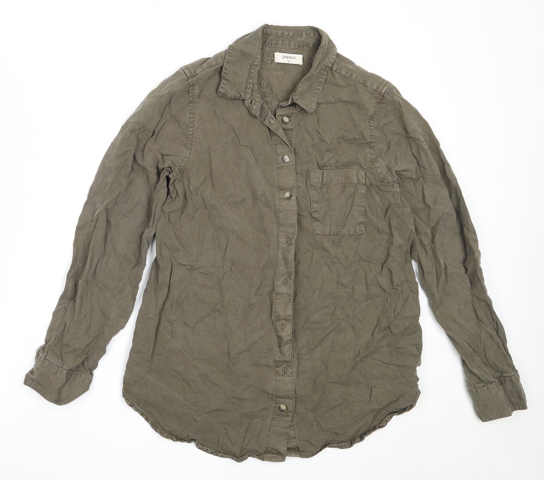 Papaya Womens Green Lyocell Basic Button-Up Size 10 Collared