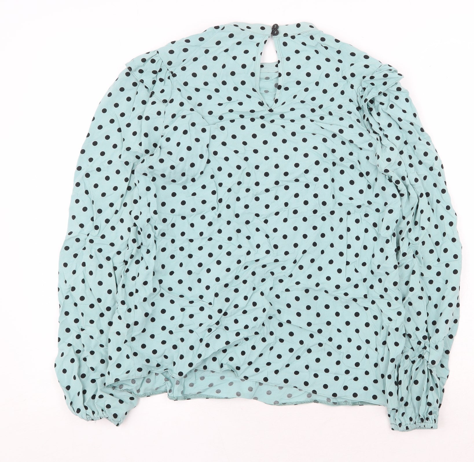 Papaya Womens Green Polka Dot Viscose Basic Blouse Size 8 Round Neck