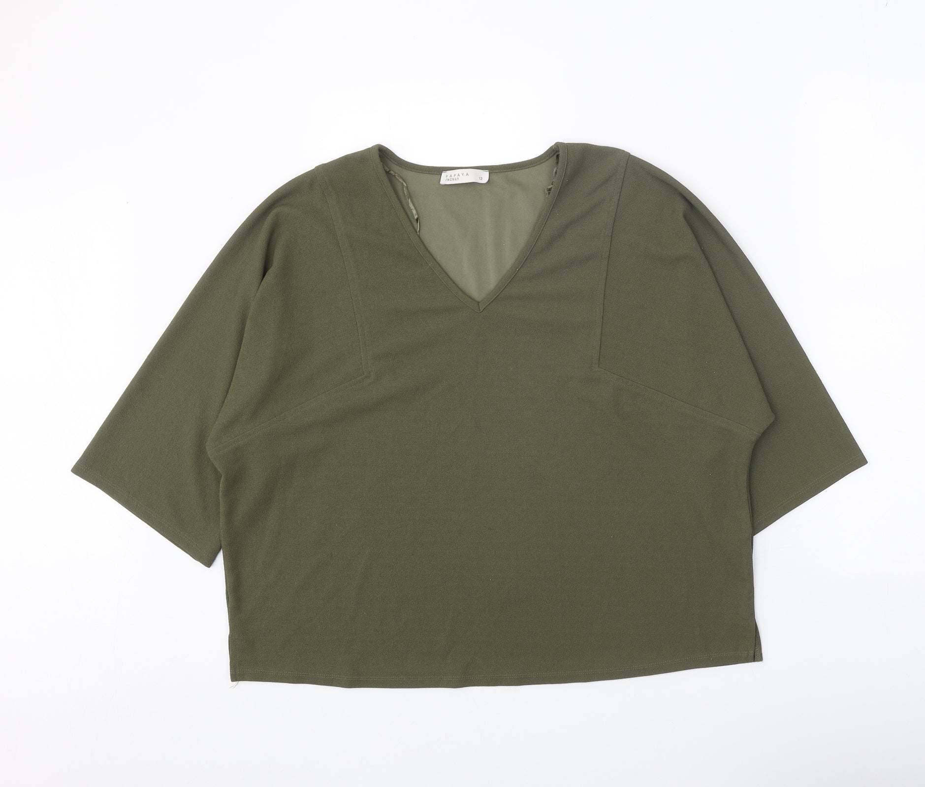 Papaya Womens Green Polyester Cropped T-Shirt Size 12 V-Neck