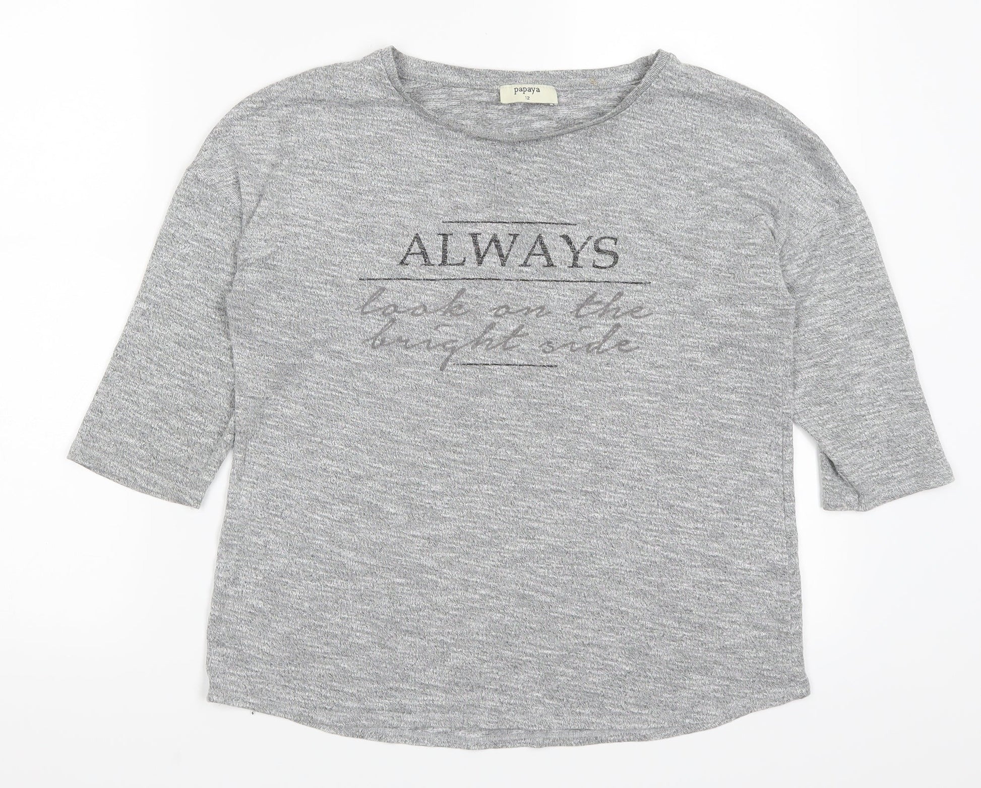 Papaya Womens Grey Basic T-Shirt Size 12 - Always Look on the Bright Side