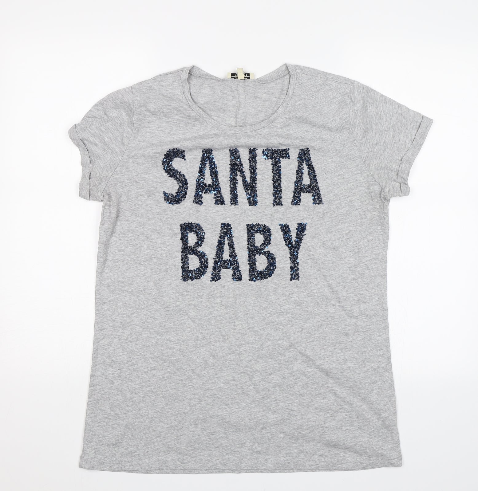 Papaya Womens Grey Basic T-Shirt Size 14 - Santa Baby