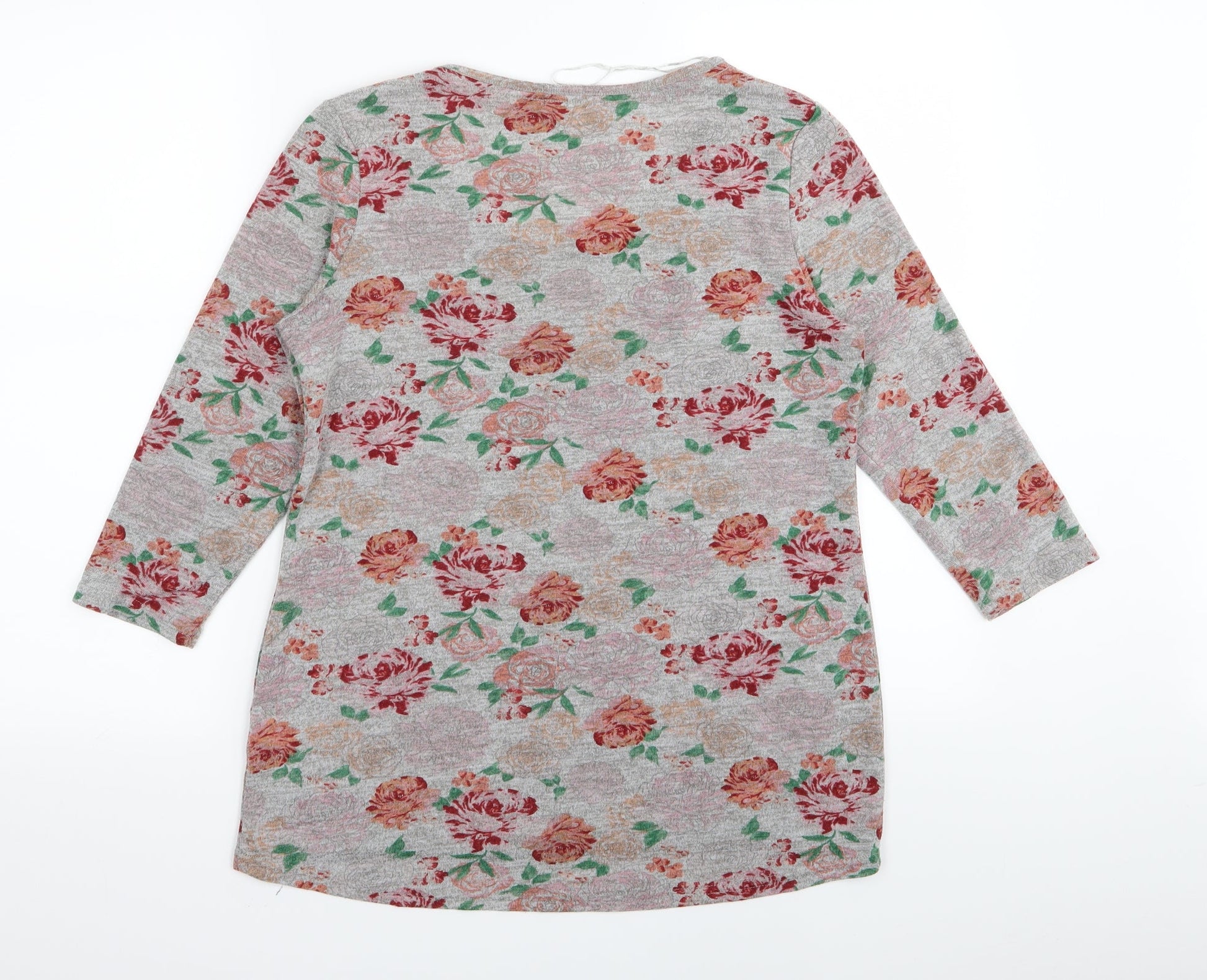Papaya Womens Grey Floral Basic T-Shirt Size 10