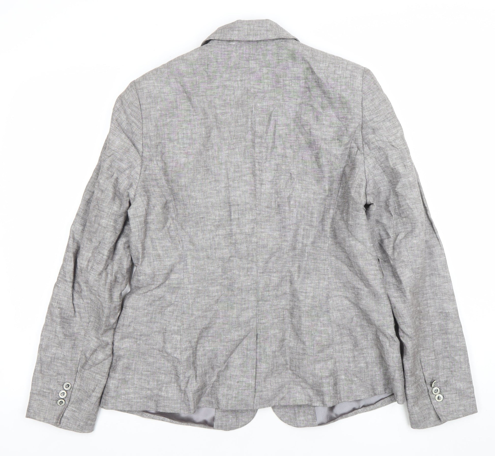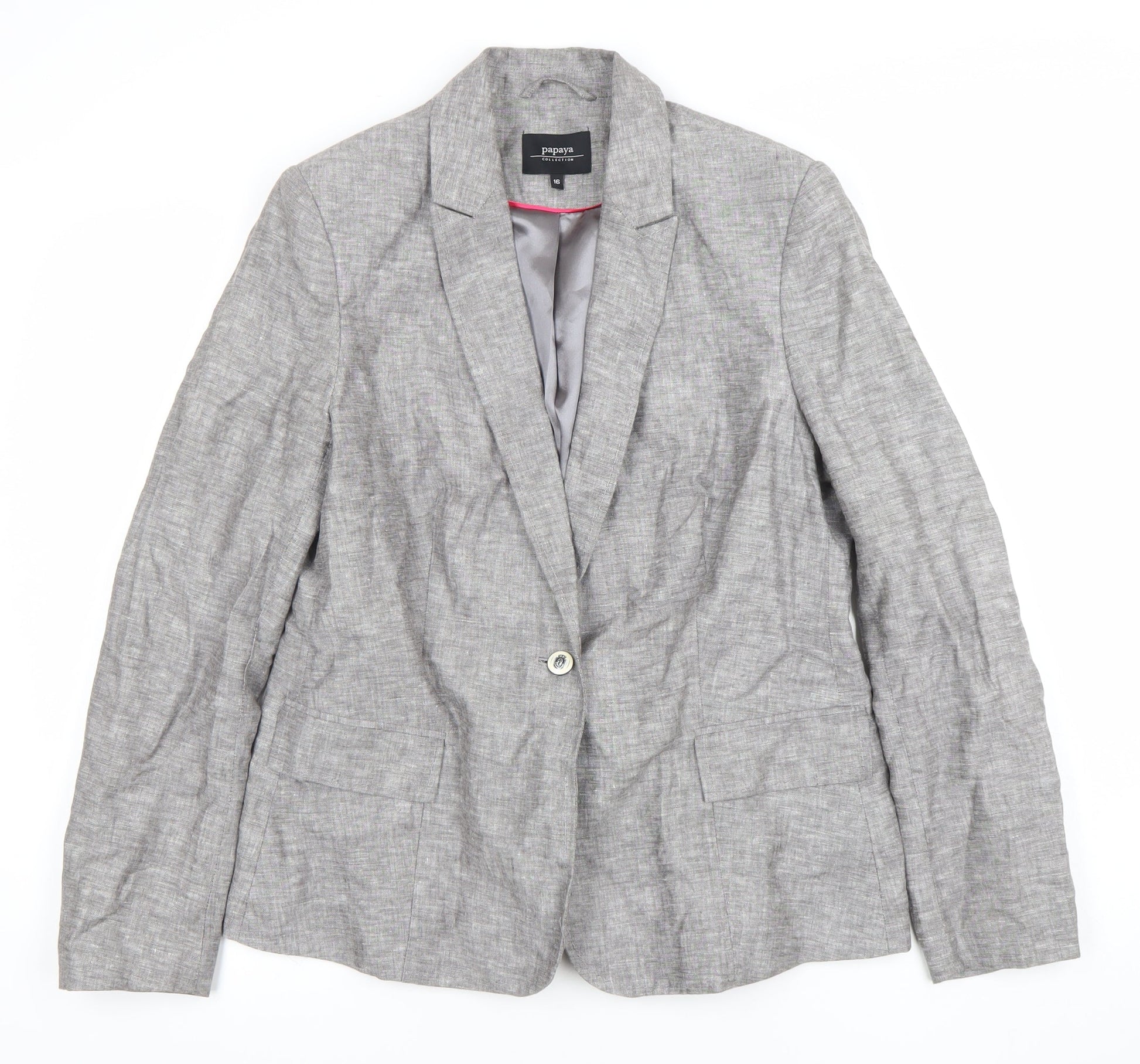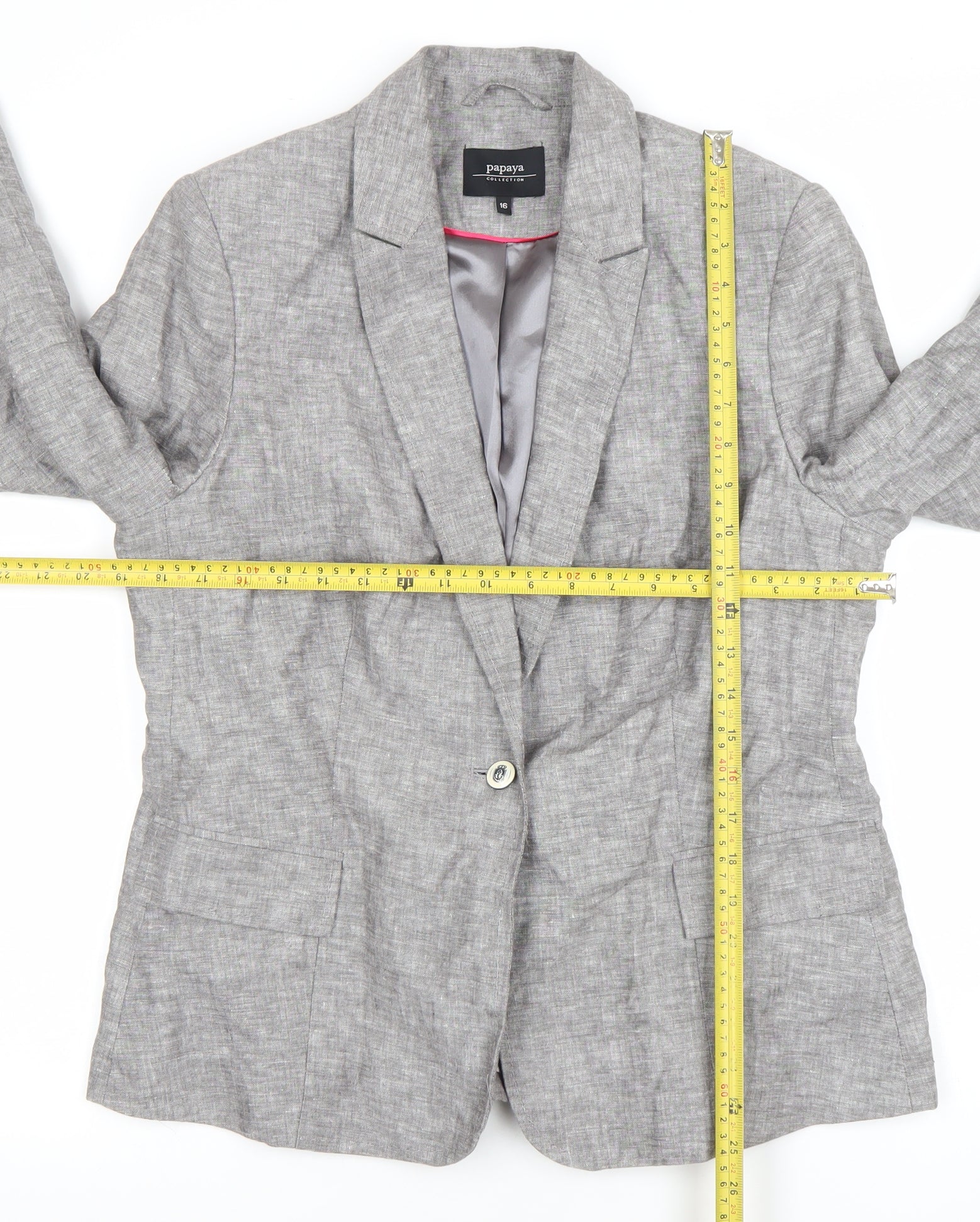 Papaya Women's Grey Linen Blend Single-Breasted Blazer Size 16