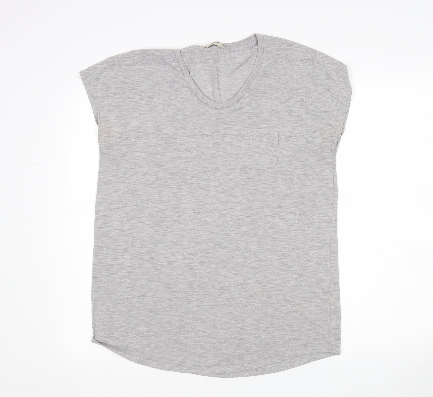 Papaya Womens Grey Polyester Basic T-Shirt Size M V-Neck