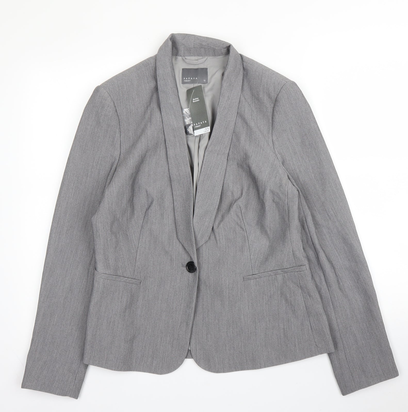 Papaya Womens Grey Polyester Jacket Blazer Size 12