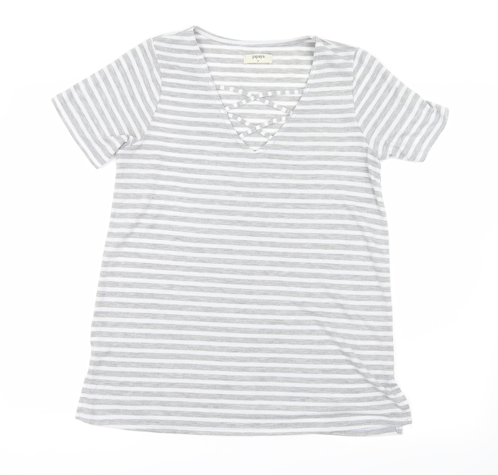 Papaya Womens Grey Striped Basic T-Shirt Size M