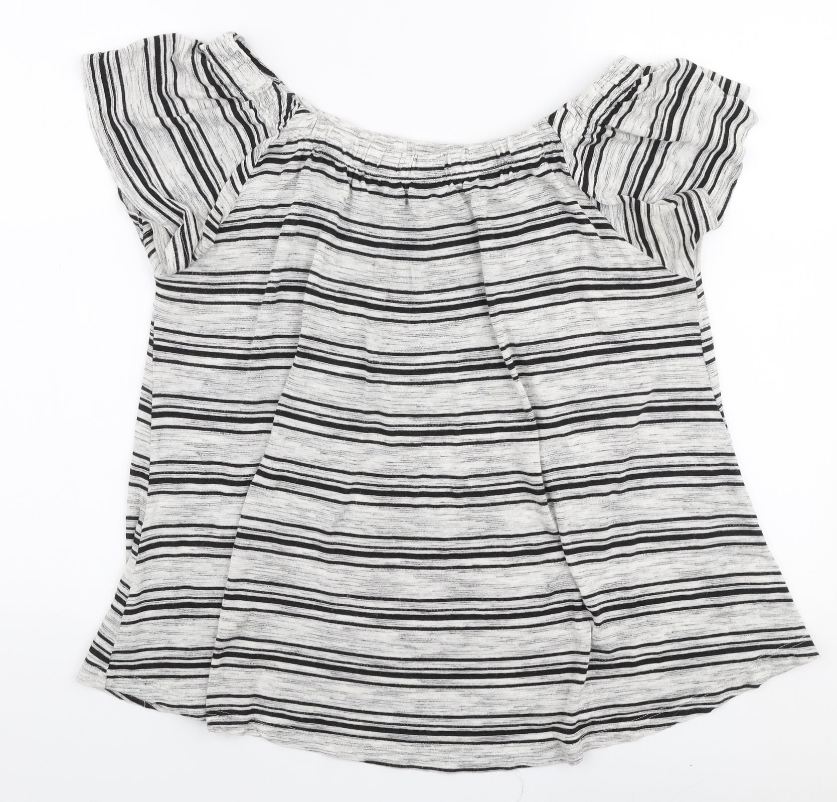 Papaya Womens Grey Striped Viscose Jersey Blouse Size 14 Off the Shoulder