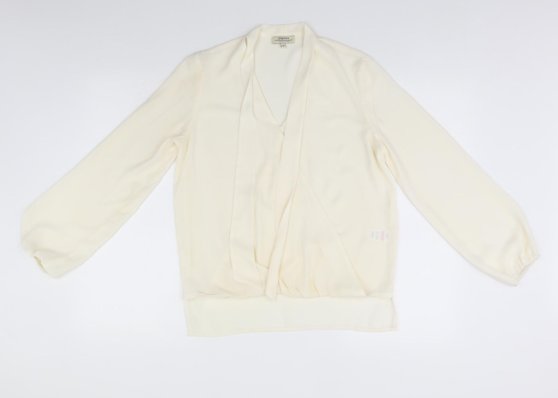 Papaya Womens Ivory Polyester Basic T-Shirt Size 8 V-Neck