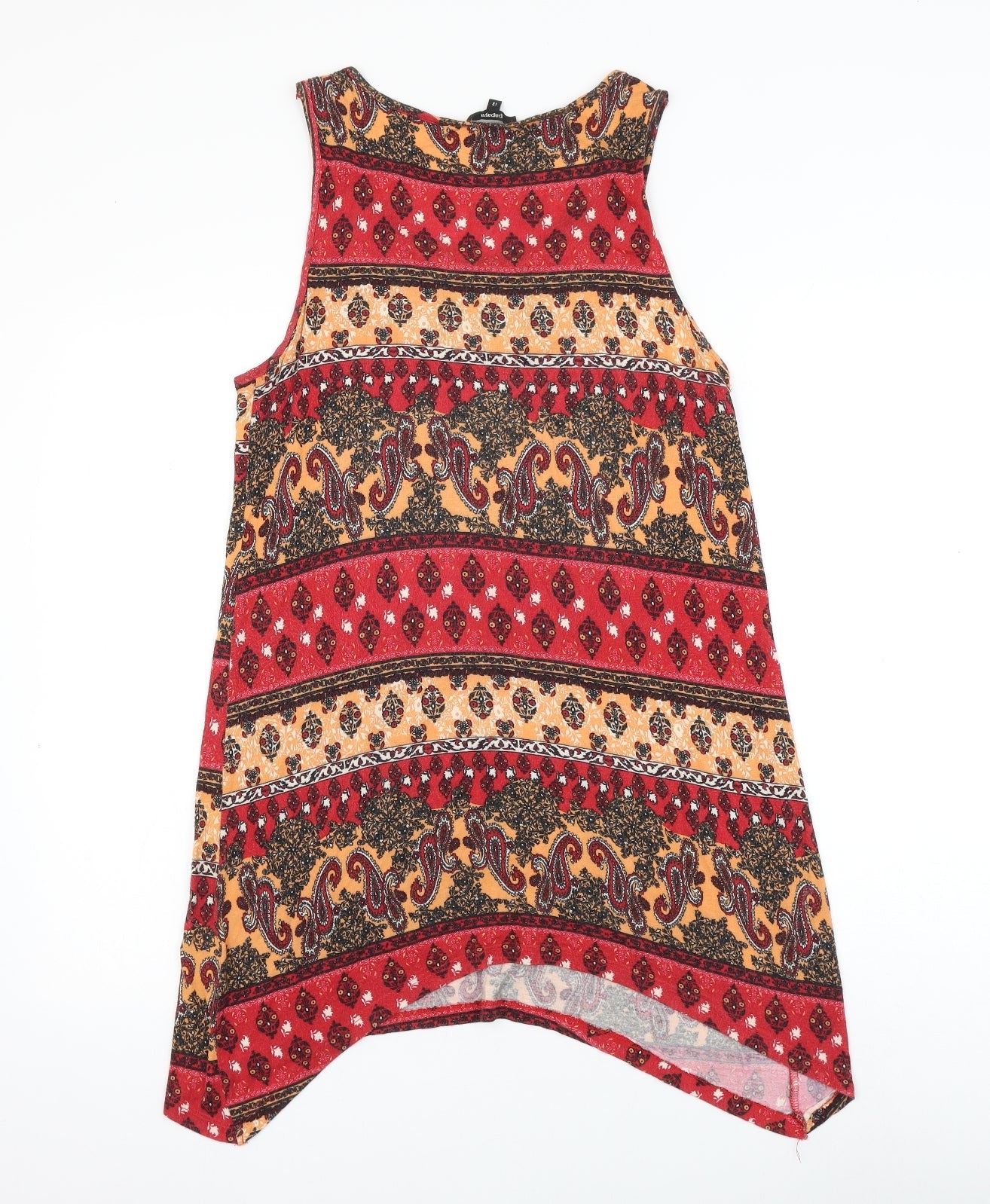 Papaya Womens Multicoloured Geometric Viscose Basic Blouse Size 12 Scoop Neck