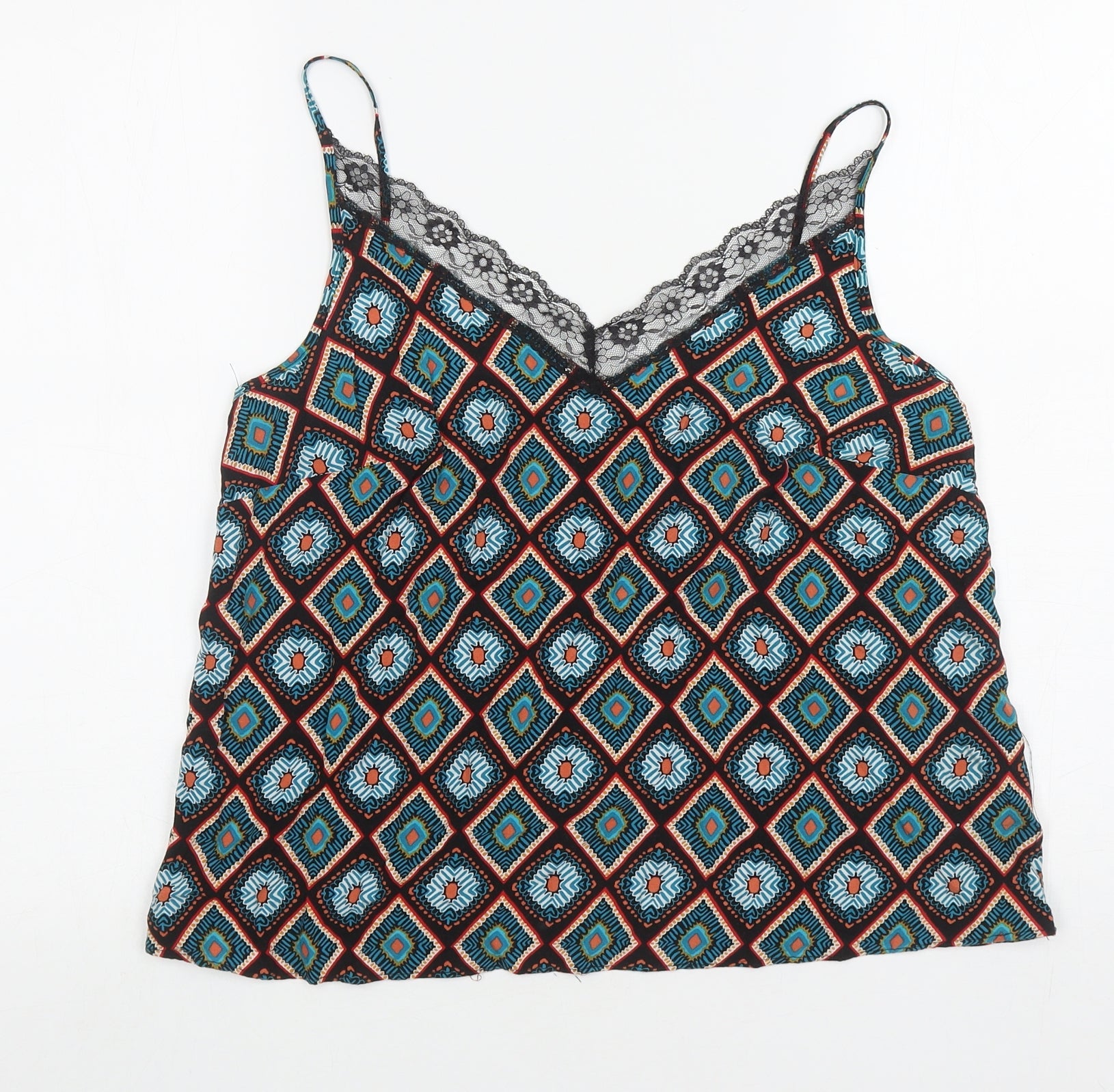 Papaya Womens Multicoloured Geometric Viscose Camisole Tank Size 12 V-Neck