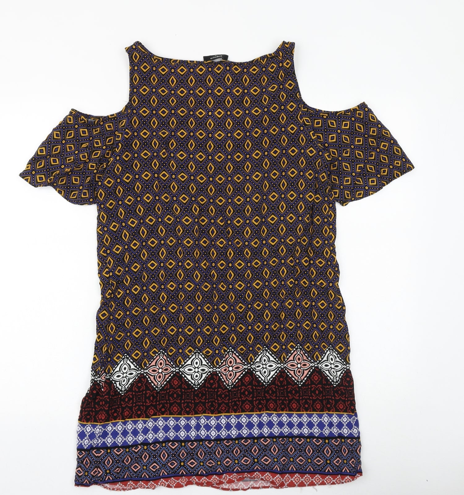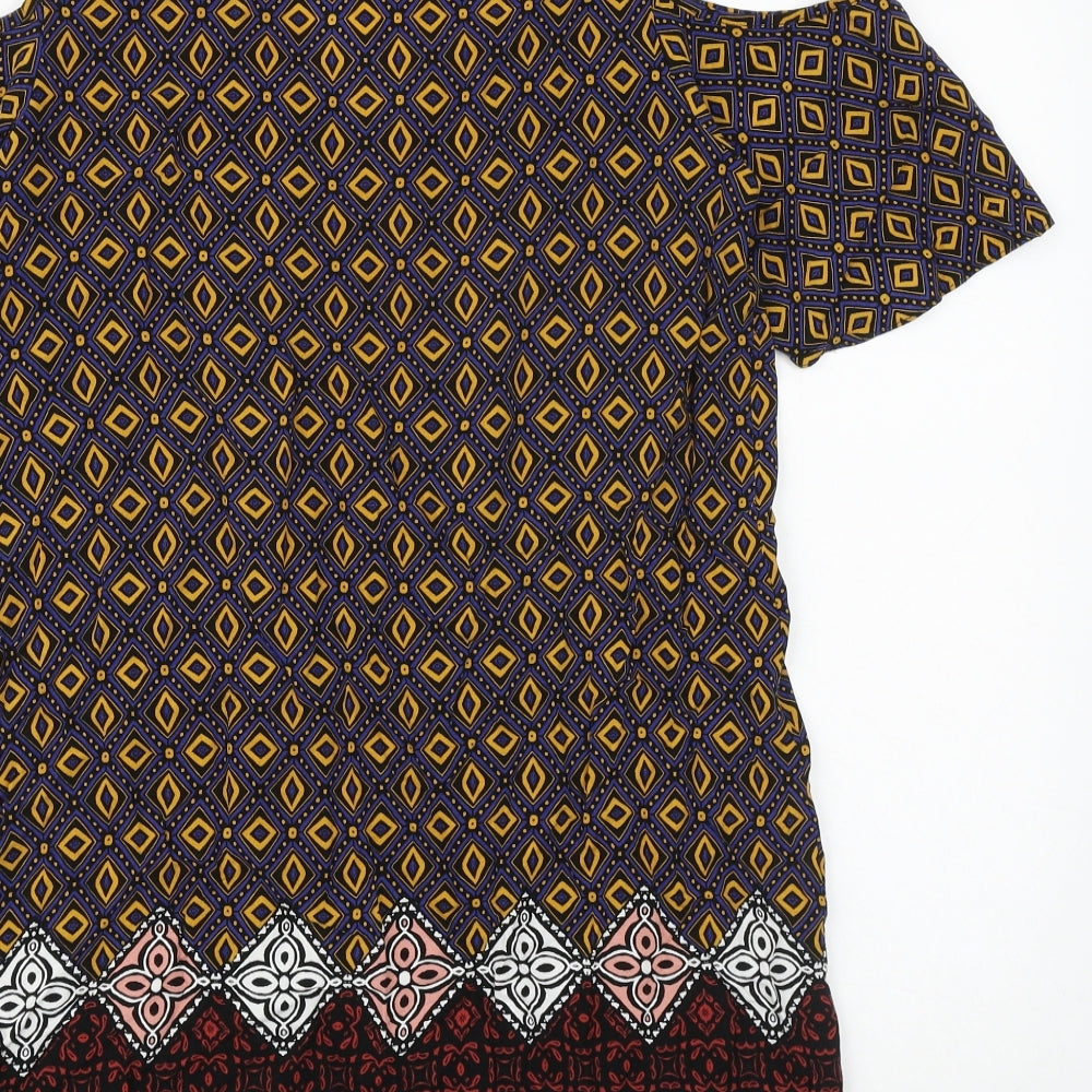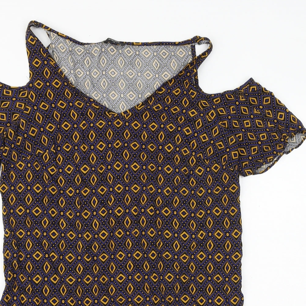 Papaya Womens Multicoloured Geometric Viscose T-Shirt Dress Size 12 V-Neck Pullover - Cold Shoulder
