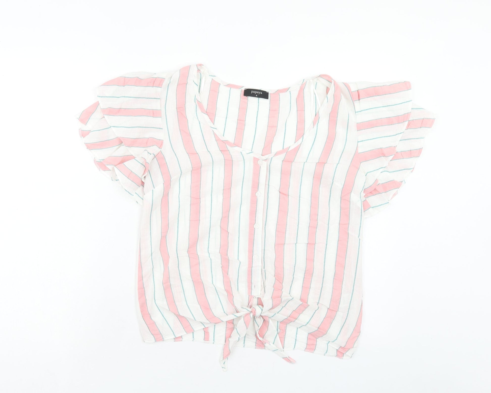 Papaya Womens Multicoloured Striped Viscose Basic Blouse Size 8 V-Neck - Tie Front