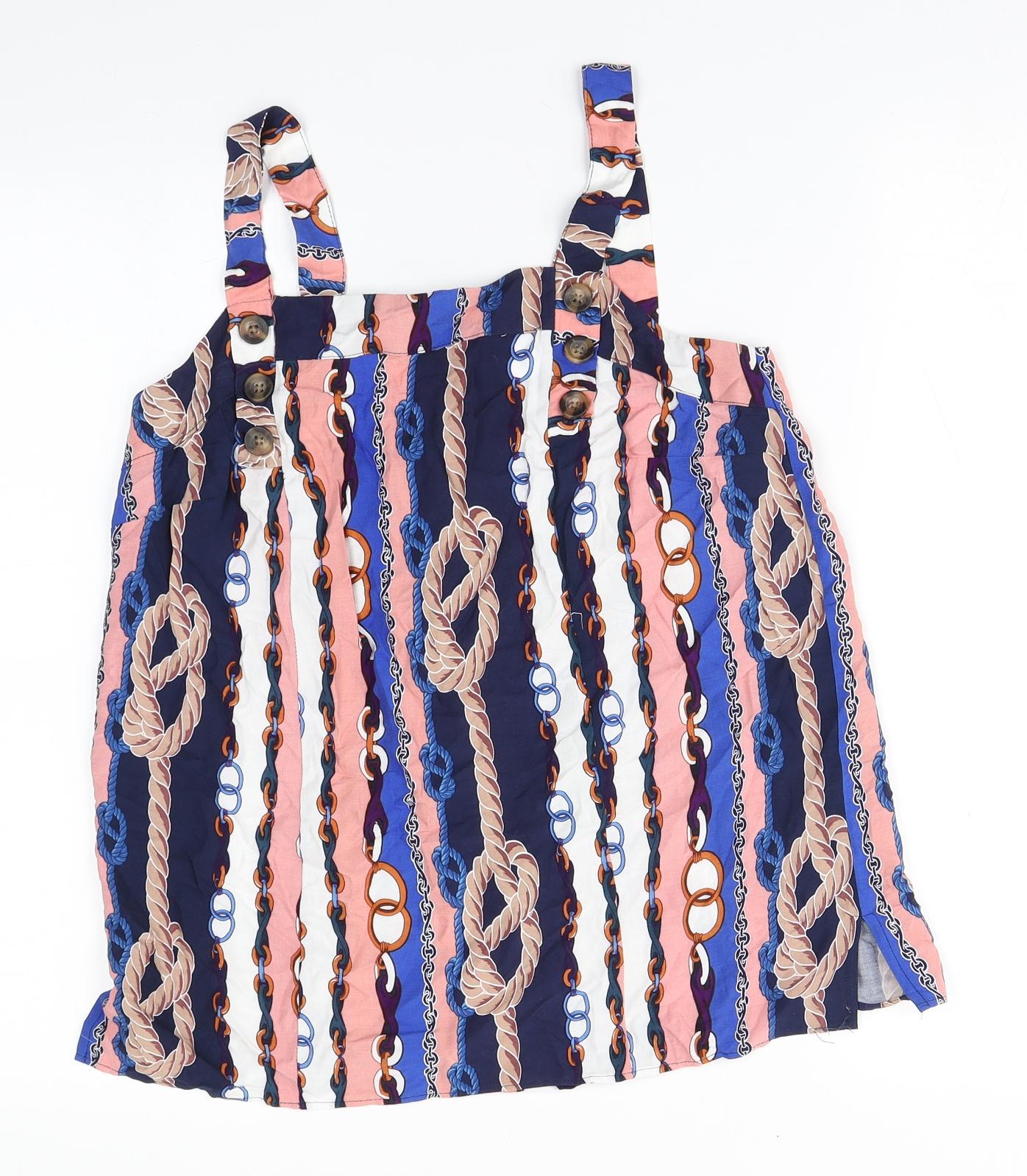 Papaya Womens Multicoloured Striped Viscose Basic Tank Size 10 Square Neck