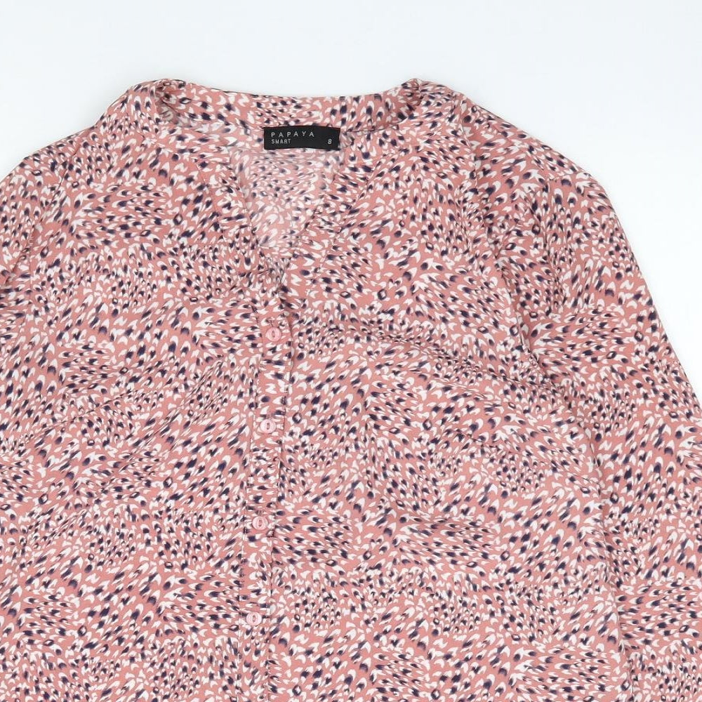 Papaya Womens Pink Animal Print Polyester Jersey Button-Up Size 8 V-Neck