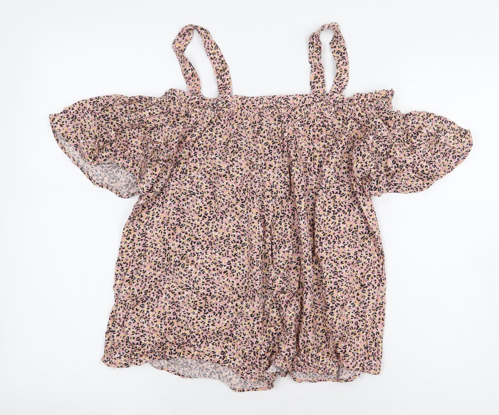 Papaya Womens Pink Animal Print Viscose Basic Blouse Size 10 Off the Shoulder - Leopard Print