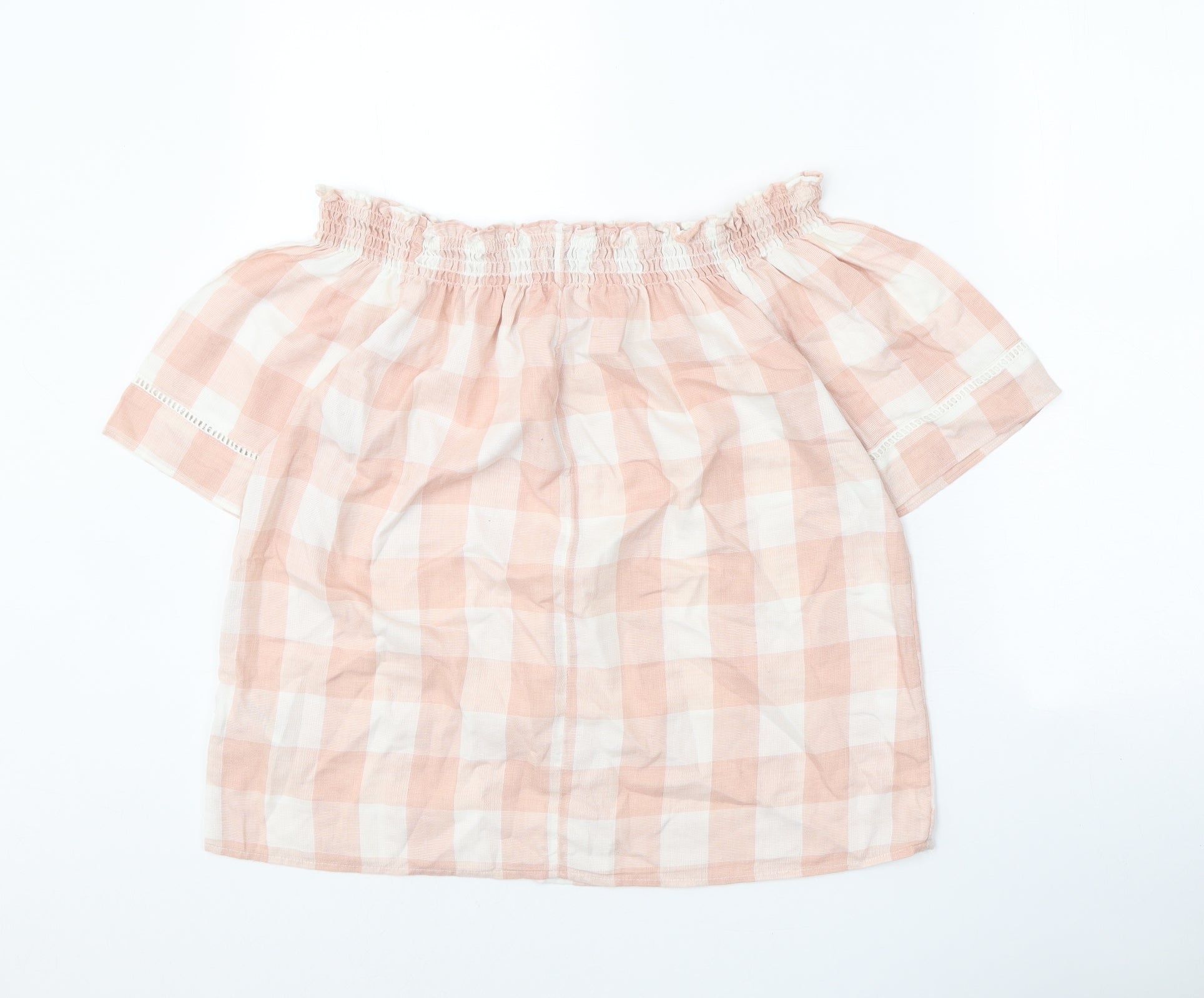Papaya Womens Pink Check Polyester Cropped Blouse Size 12 Boat Neck