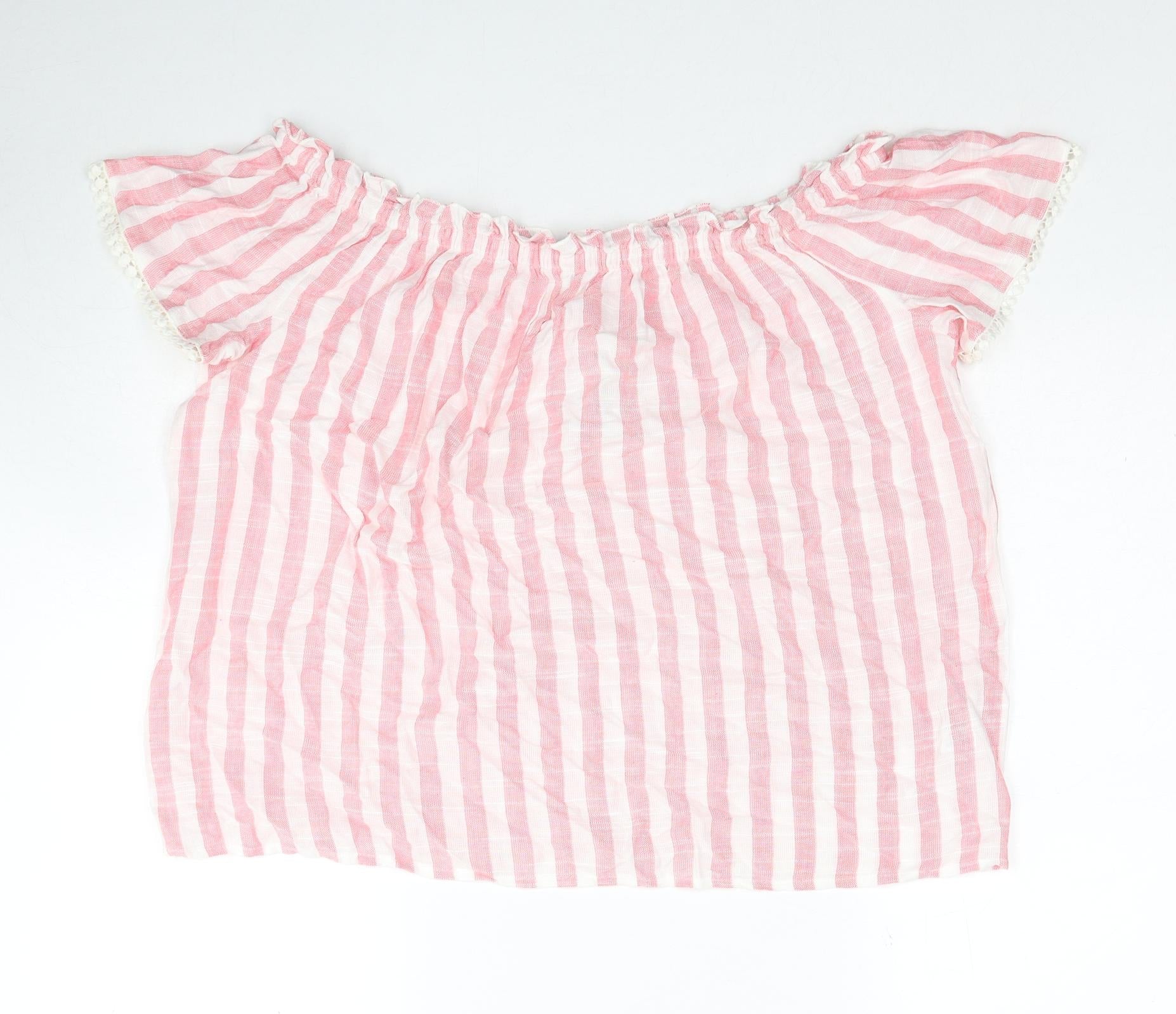 Papaya Womens Pink Striped Viscose Basic Blouse Size 14 Off the Shoulder - Lace Detail on Sleeves