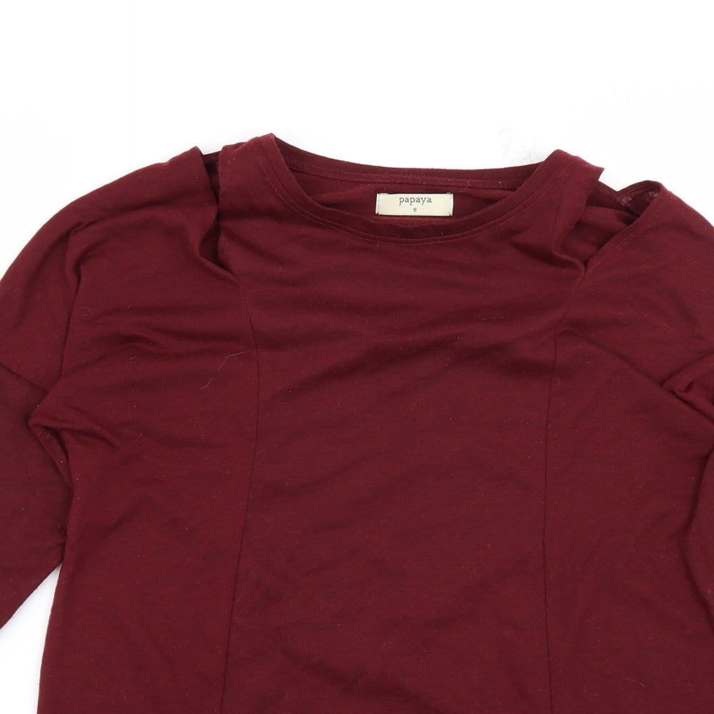 Papaya Womens Purple Basic T-Shirt Size 8 - slit in sholders