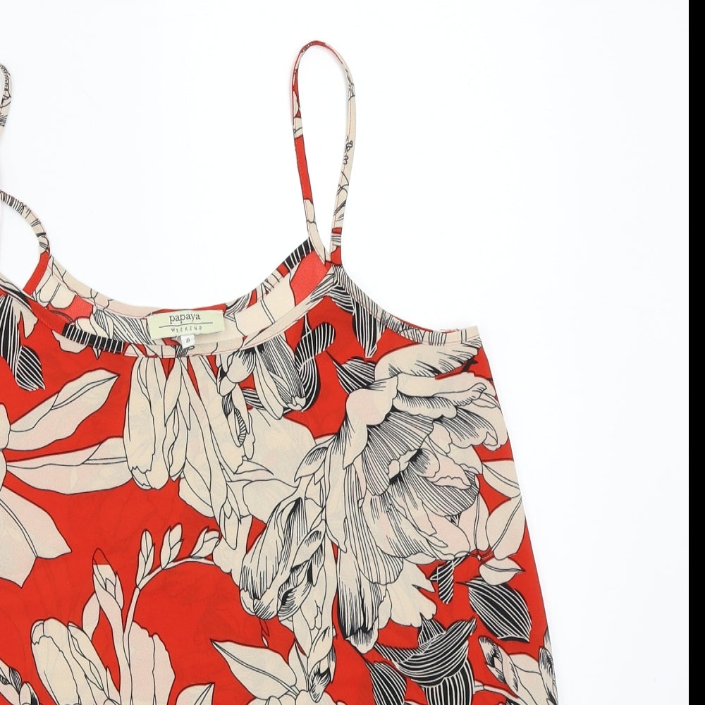 Papaya Womens Red Floral Basic T-Shirt Size 8