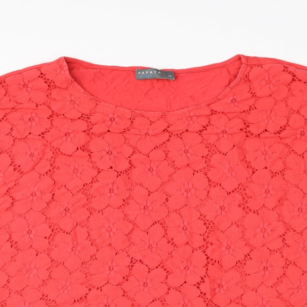 Papaya Womens Red Floral Viscose Basic Blouse Size 14 Round Neck