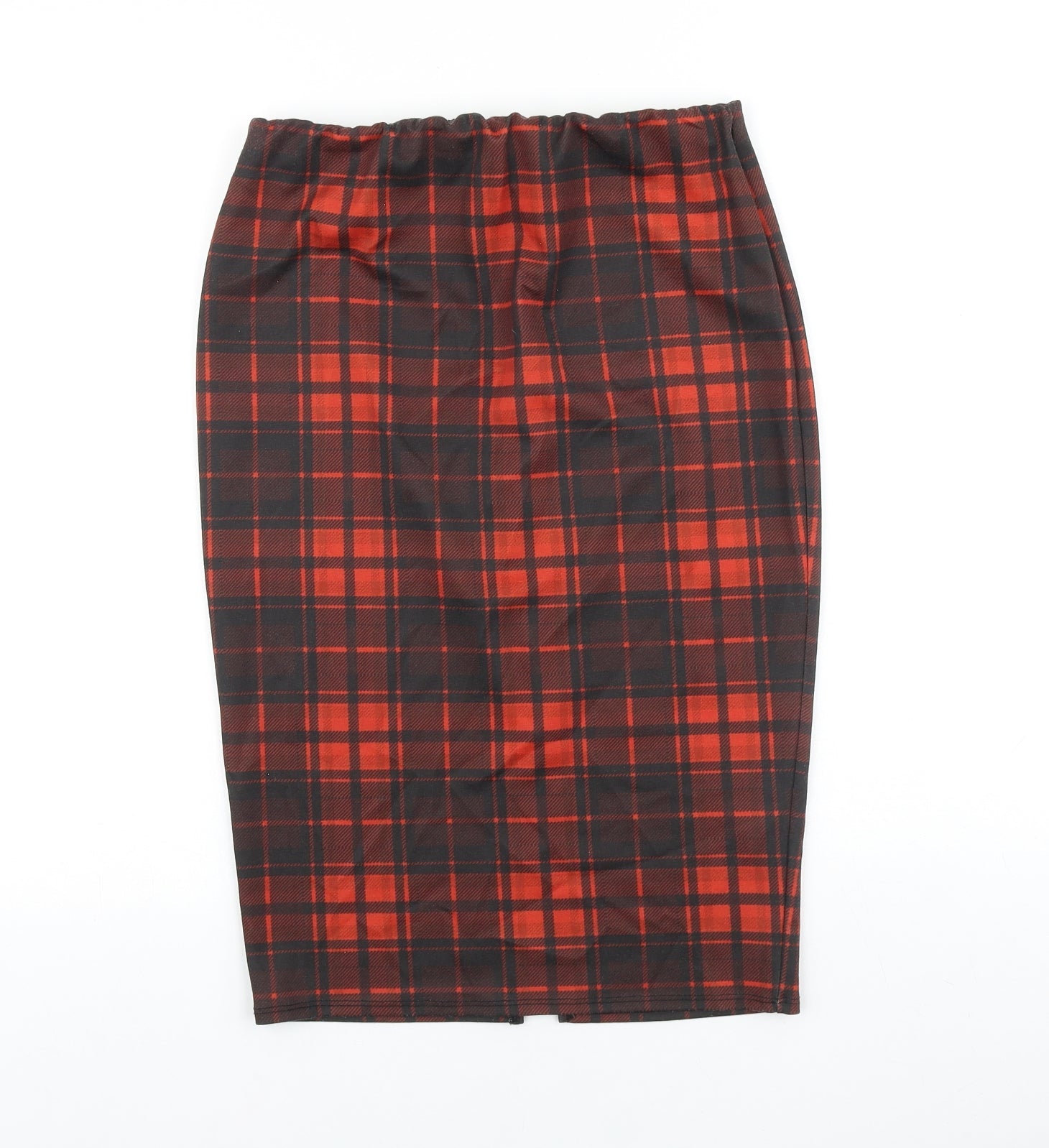 Papaya Womens Red Plaid Viscose Straight & Pencil Skirt Size 10