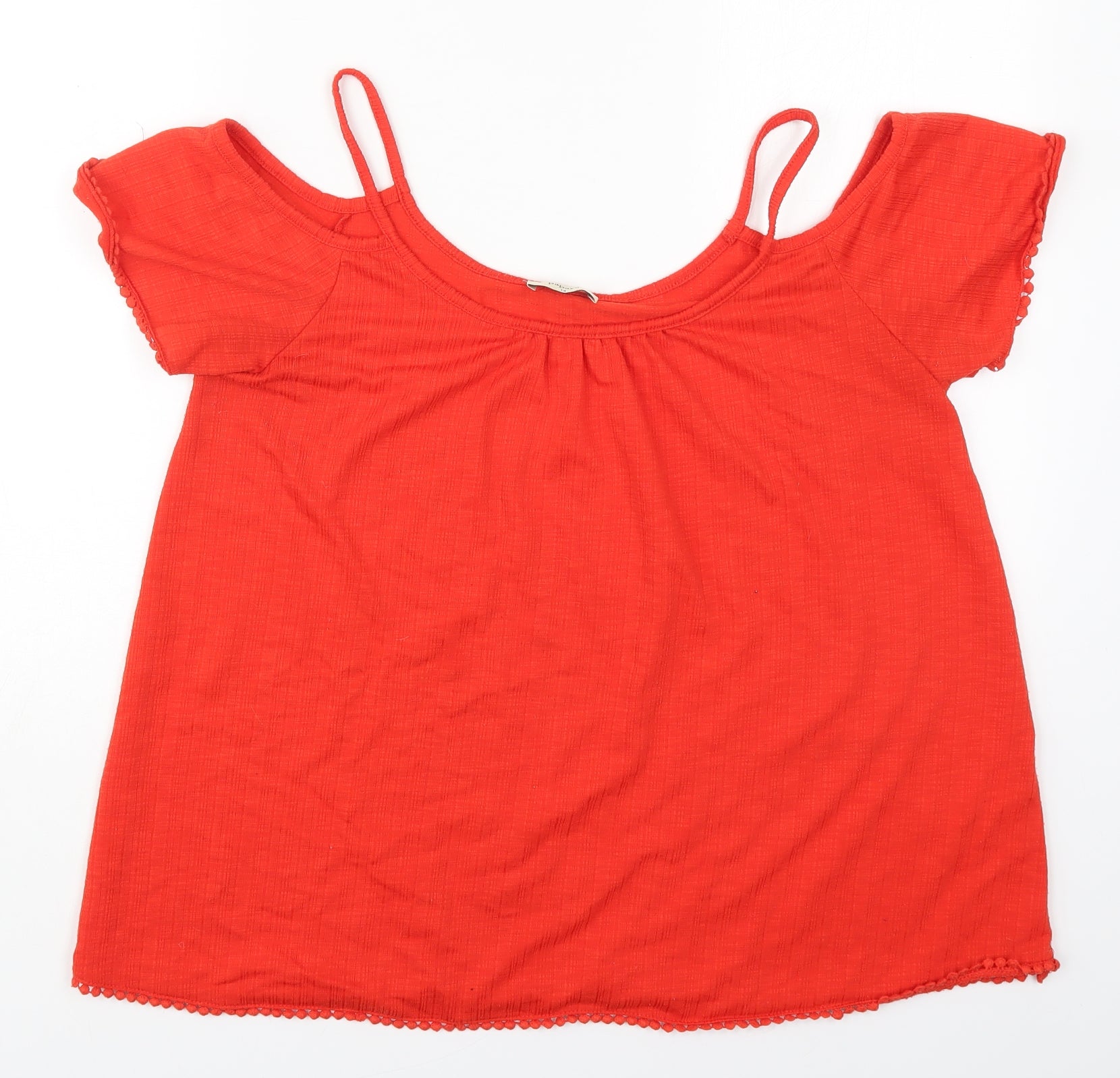 Papaya Womens Red Polyester Basic T-Shirt Size 14 Round Neck