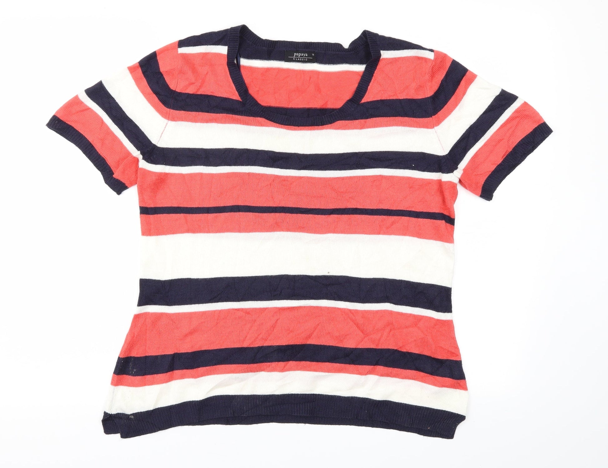 Papaya Womens Red Striped Basic T-Shirt Size 12