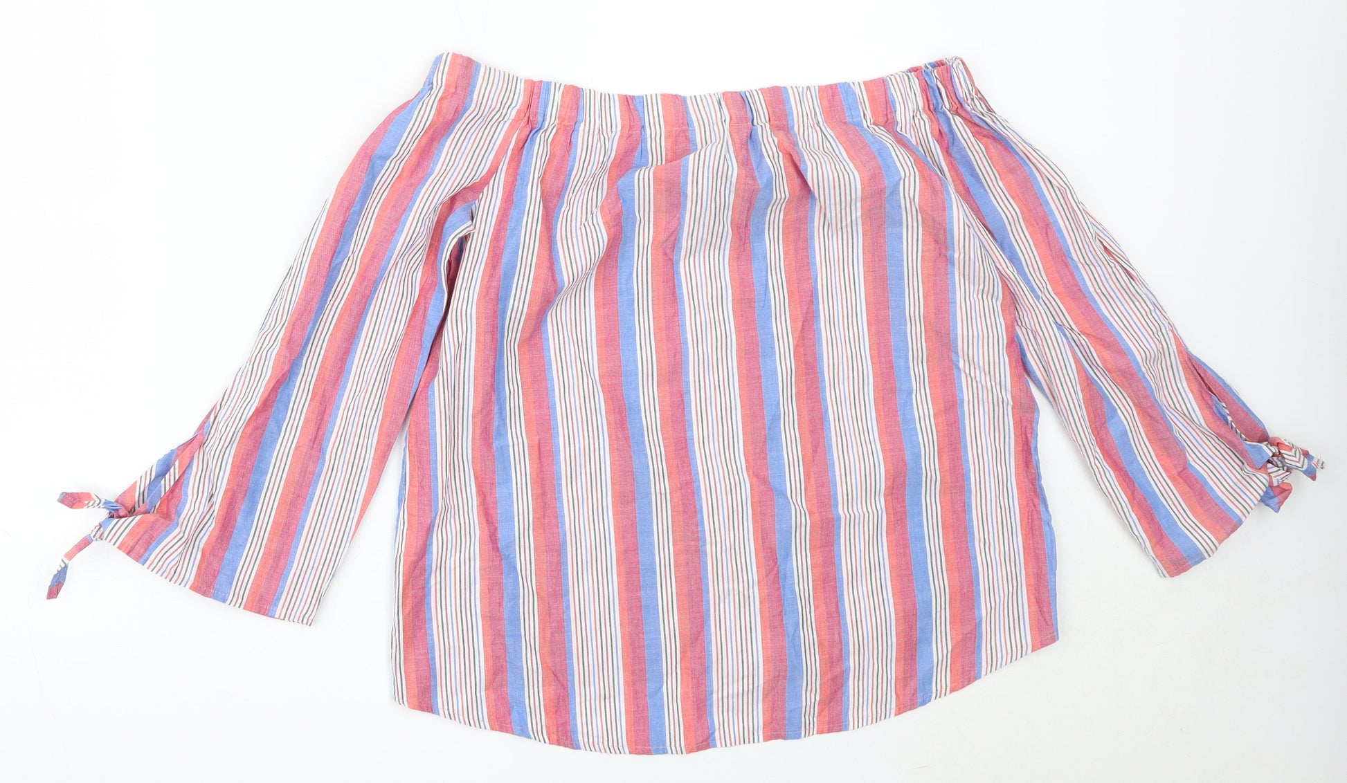 Papaya Womens Red Striped Cotton Basic Blouse Size 8 Off the Shoulder