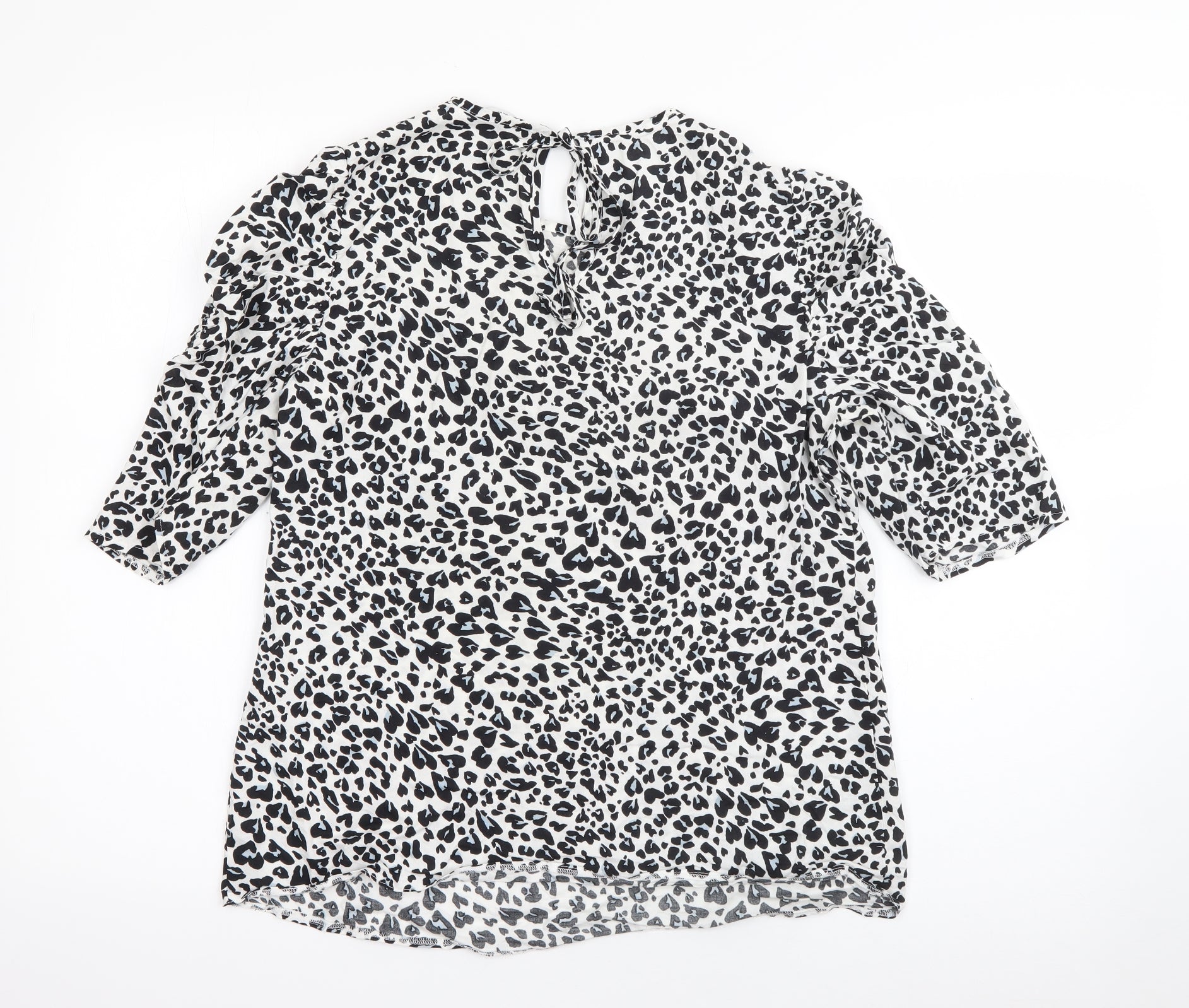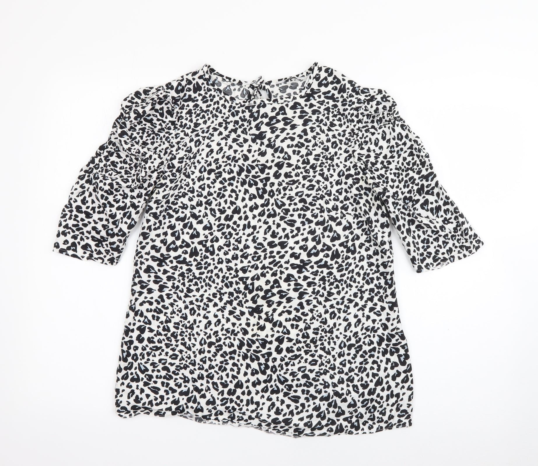 Papaya Womens White Animal Print Viscose Basic Blouse Size 8 Round Neck