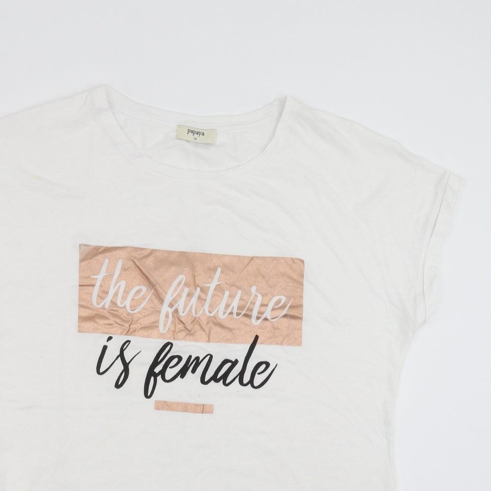 Papaya Womens White Basic T-Shirt Size 14 - the future is female