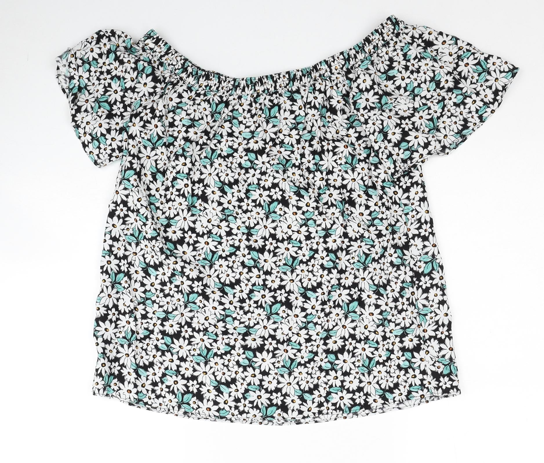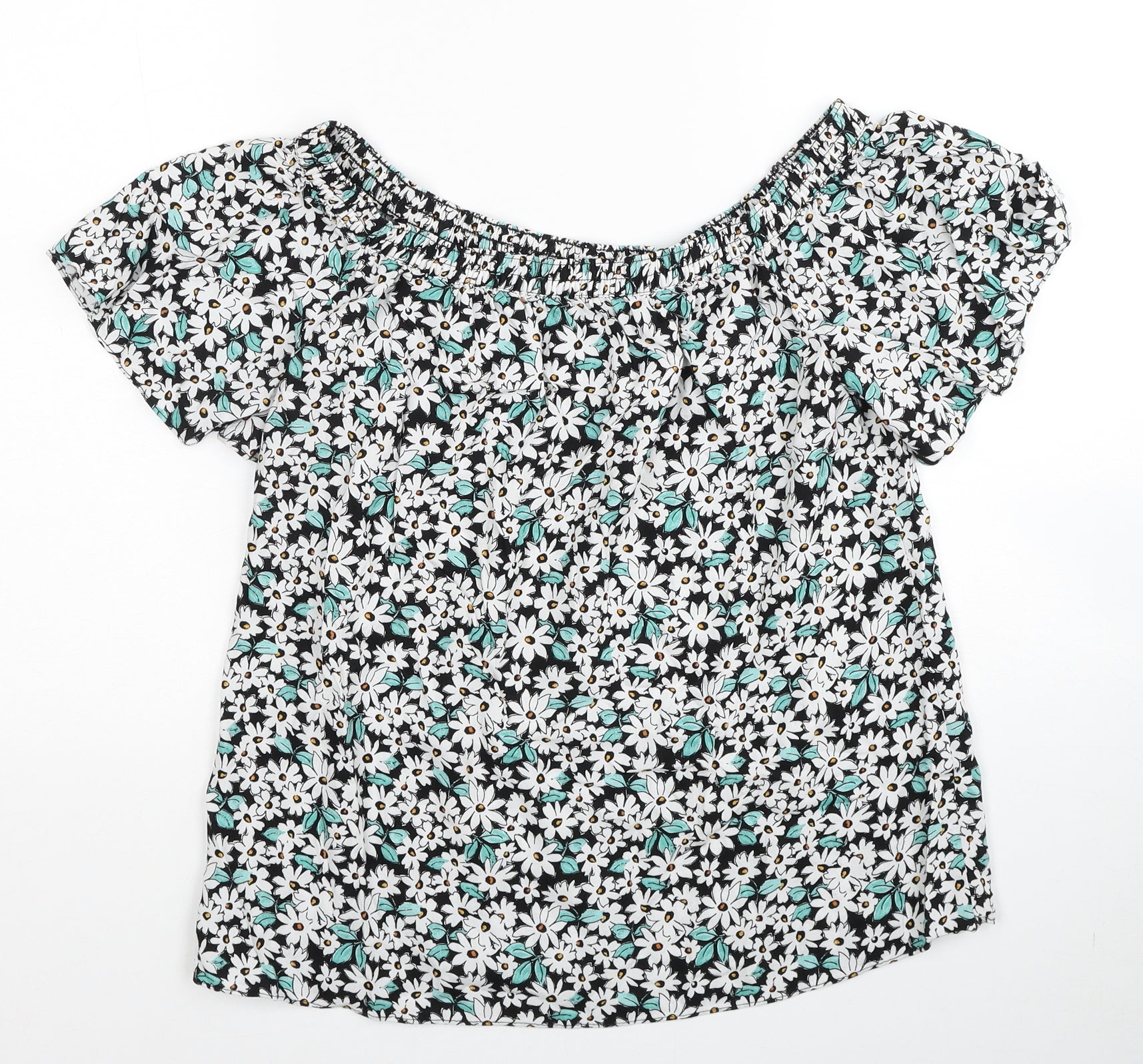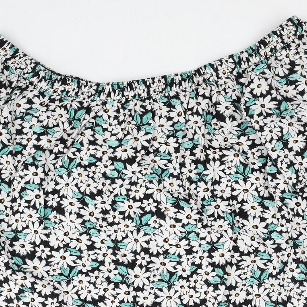 Papaya Womens White Floral Viscose Basic Blouse Size 10 Boat Neck