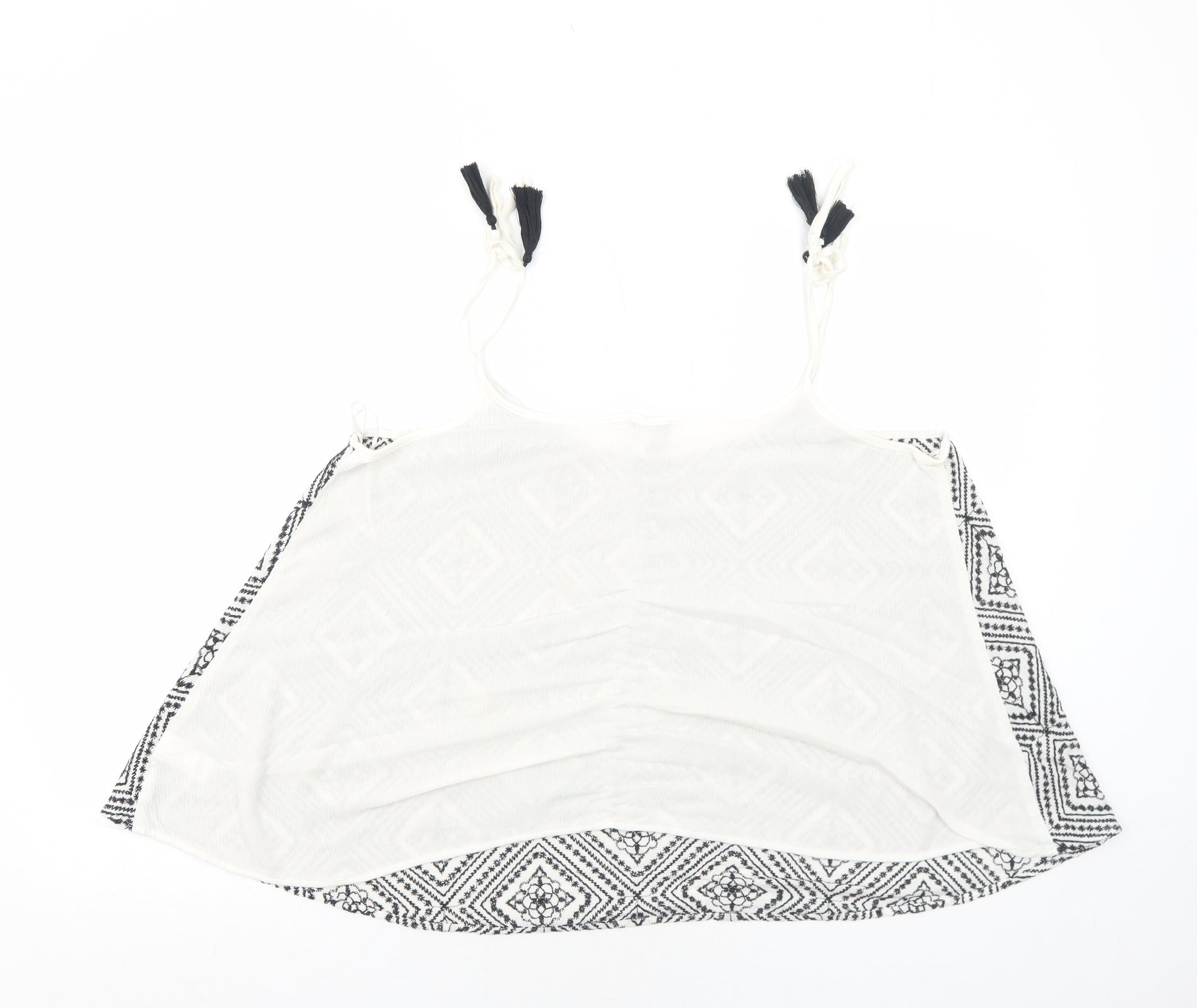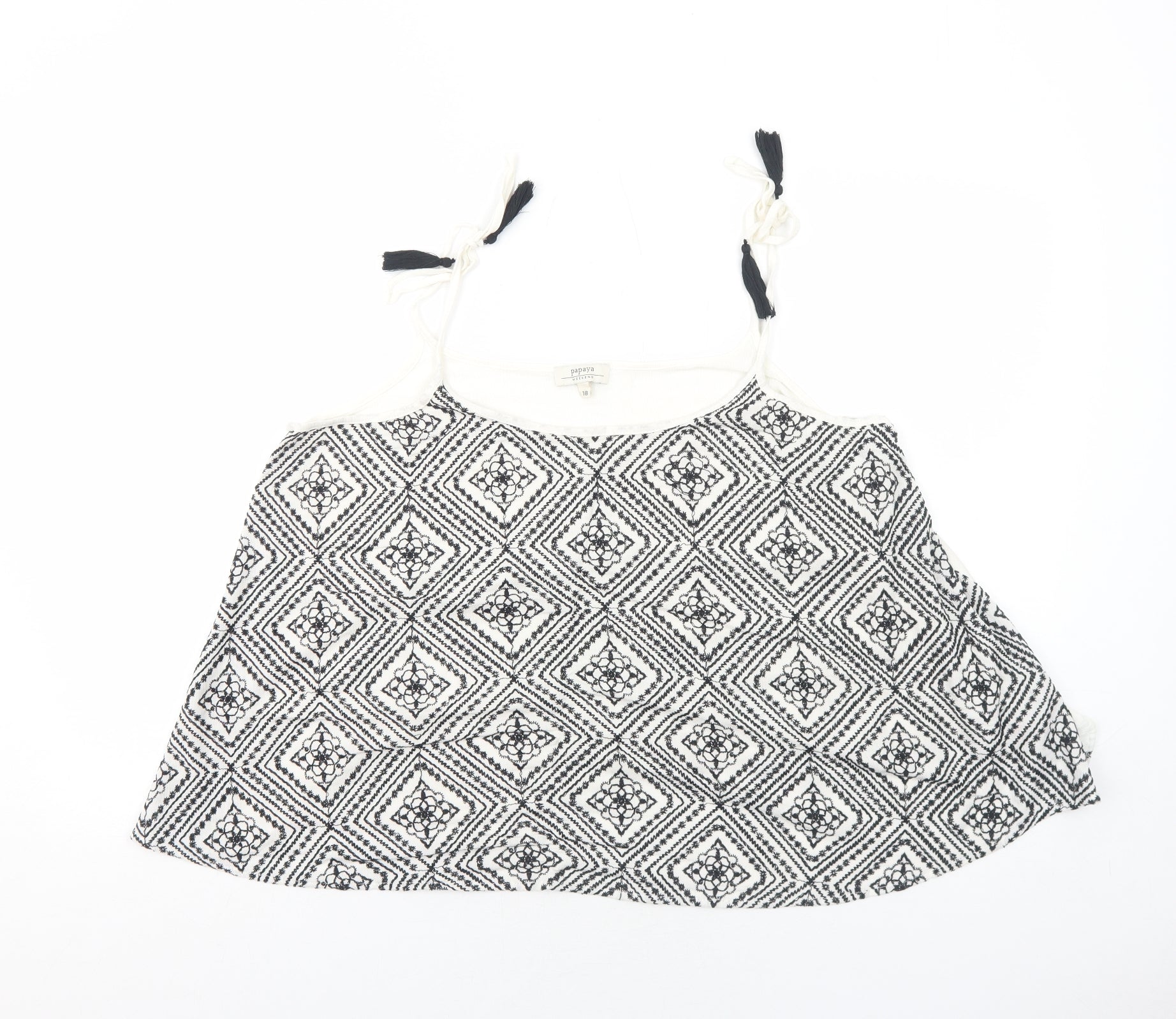 Papaya Womens White Geometric Viscose Basic Tank Size 18 Round Neck