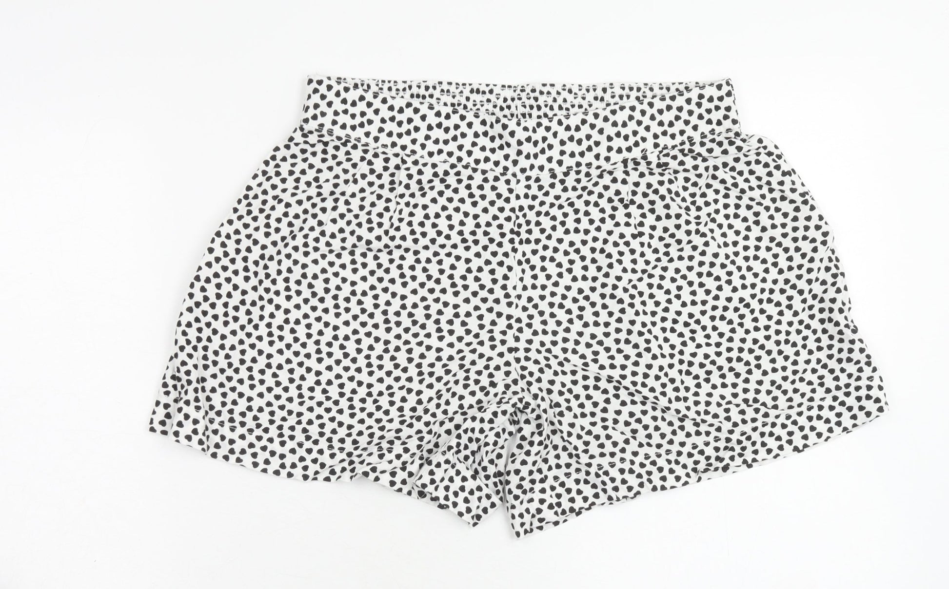 Papaya Womens White Geometric Viscose Bermuda Shorts Size 10 Regular Pull On - Heart Pattern