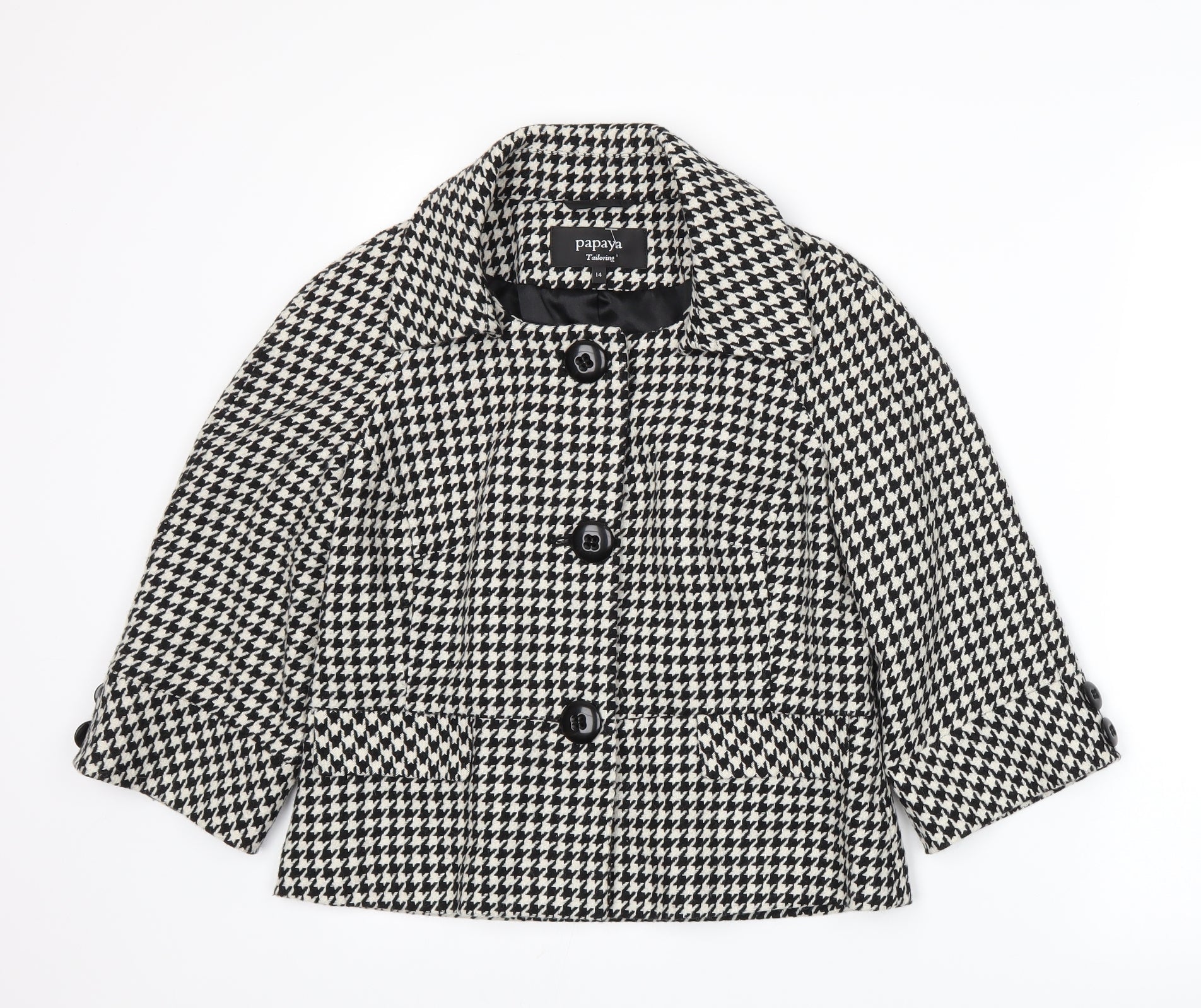 Papaya Womens White Houndstooth Jacket Blazer Size 14