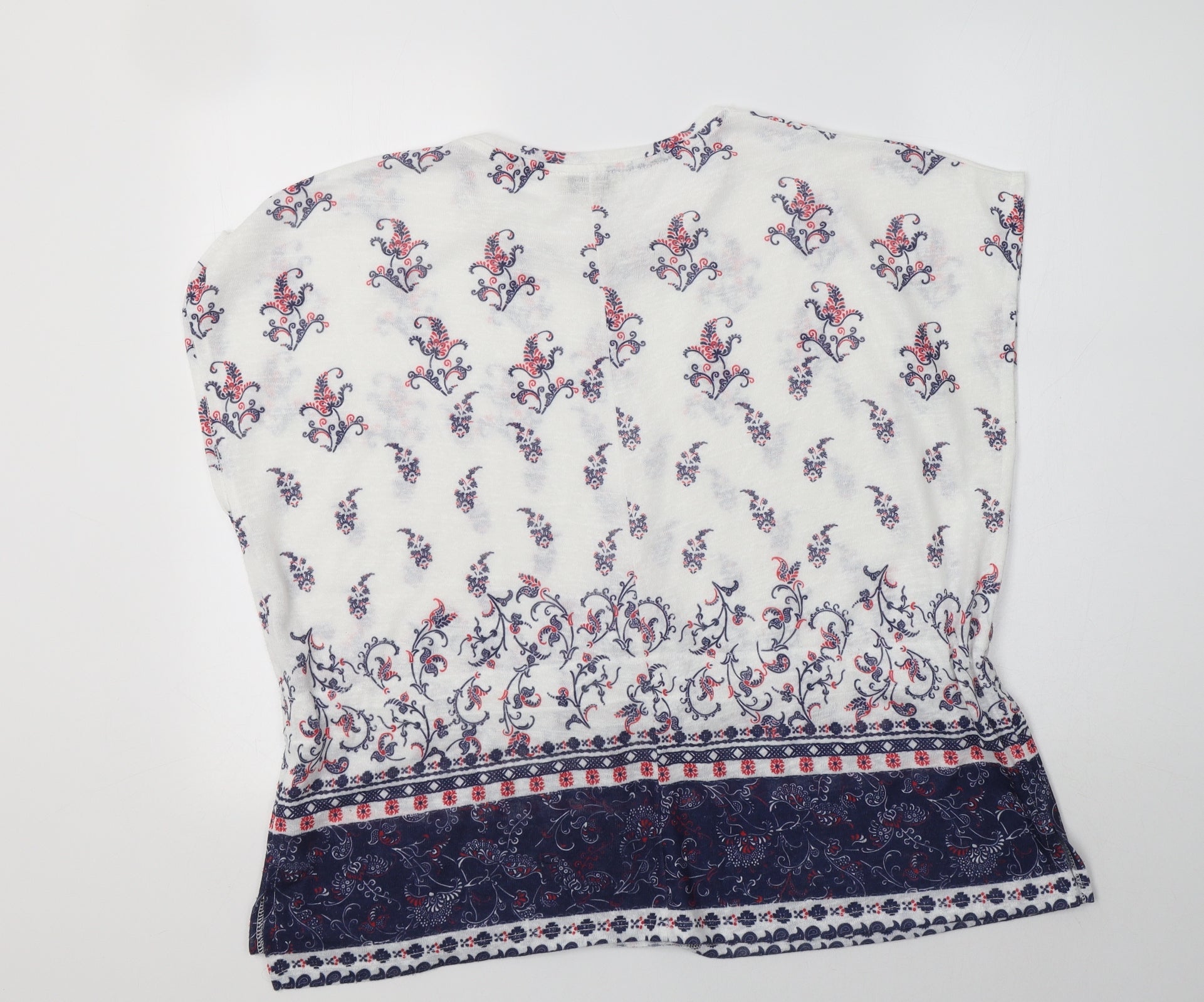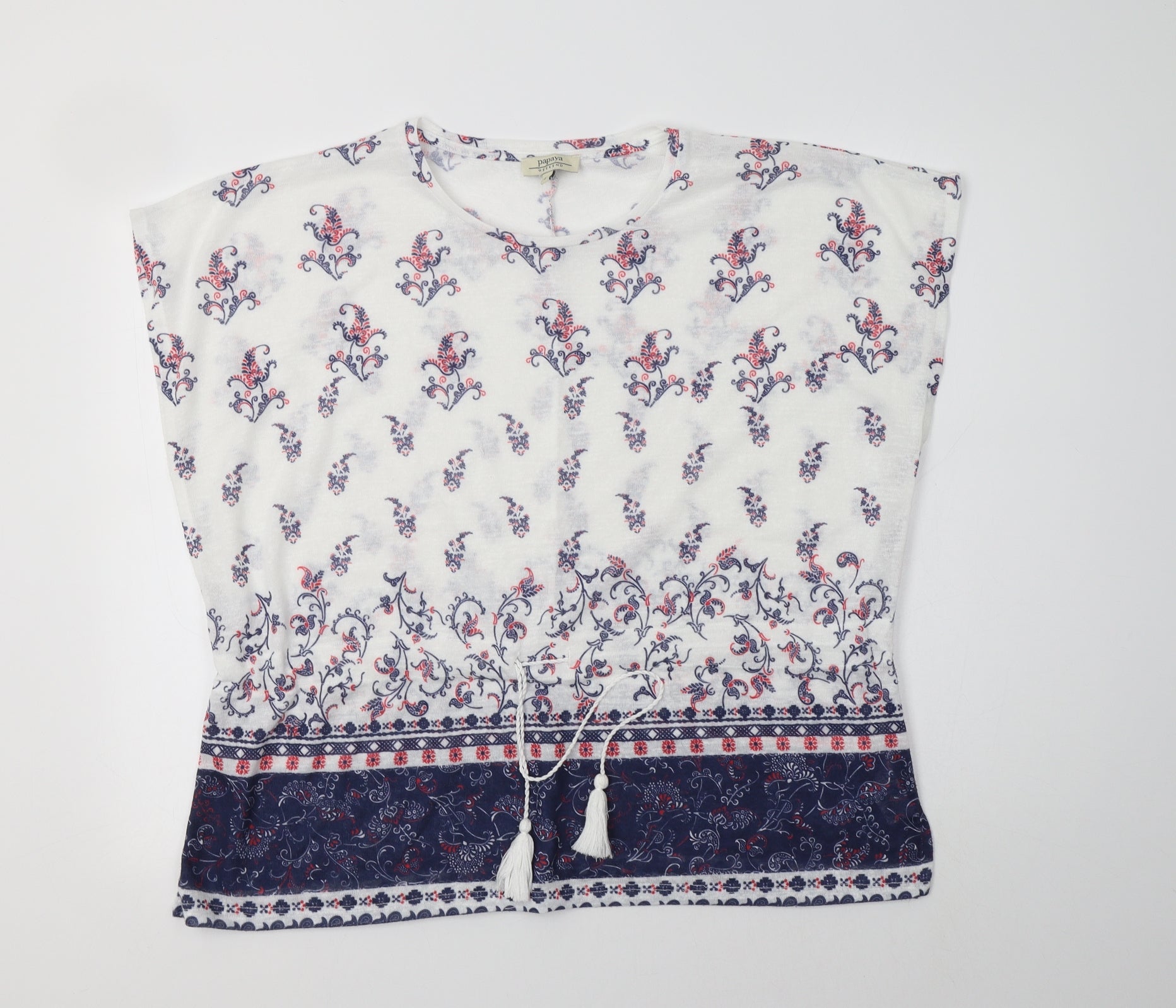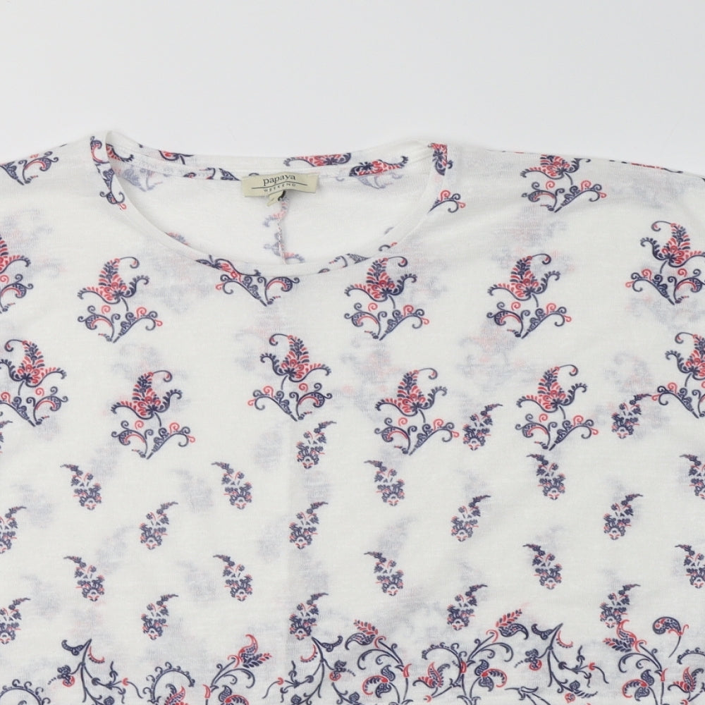 Papaya Womens White Paisley Polyester Basic Blouse Size L Round Neck
