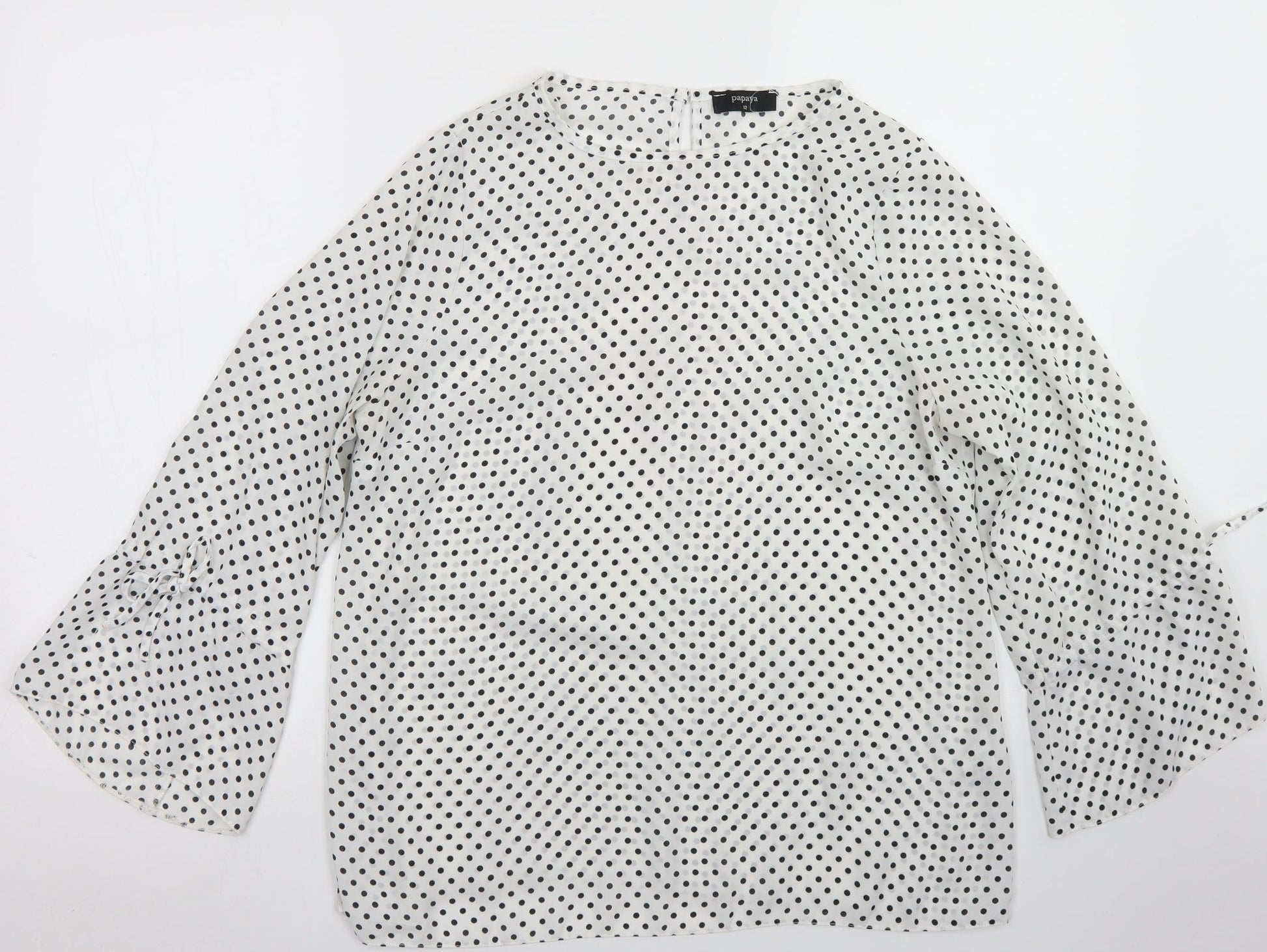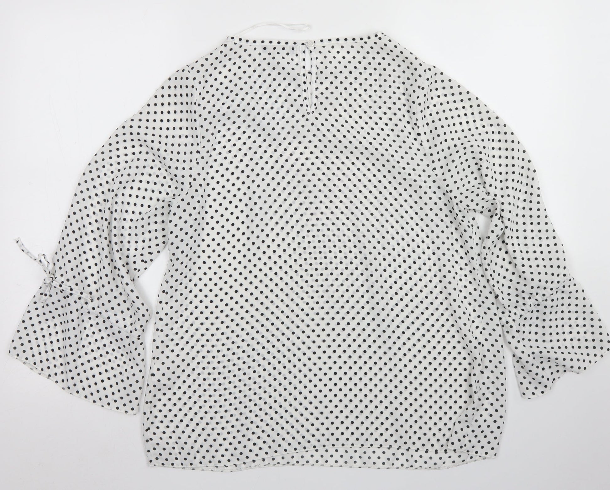 Papaya Womens White Polka Dot Polyester Basic Blouse Size 12 Round Neck - Bell Sleeve