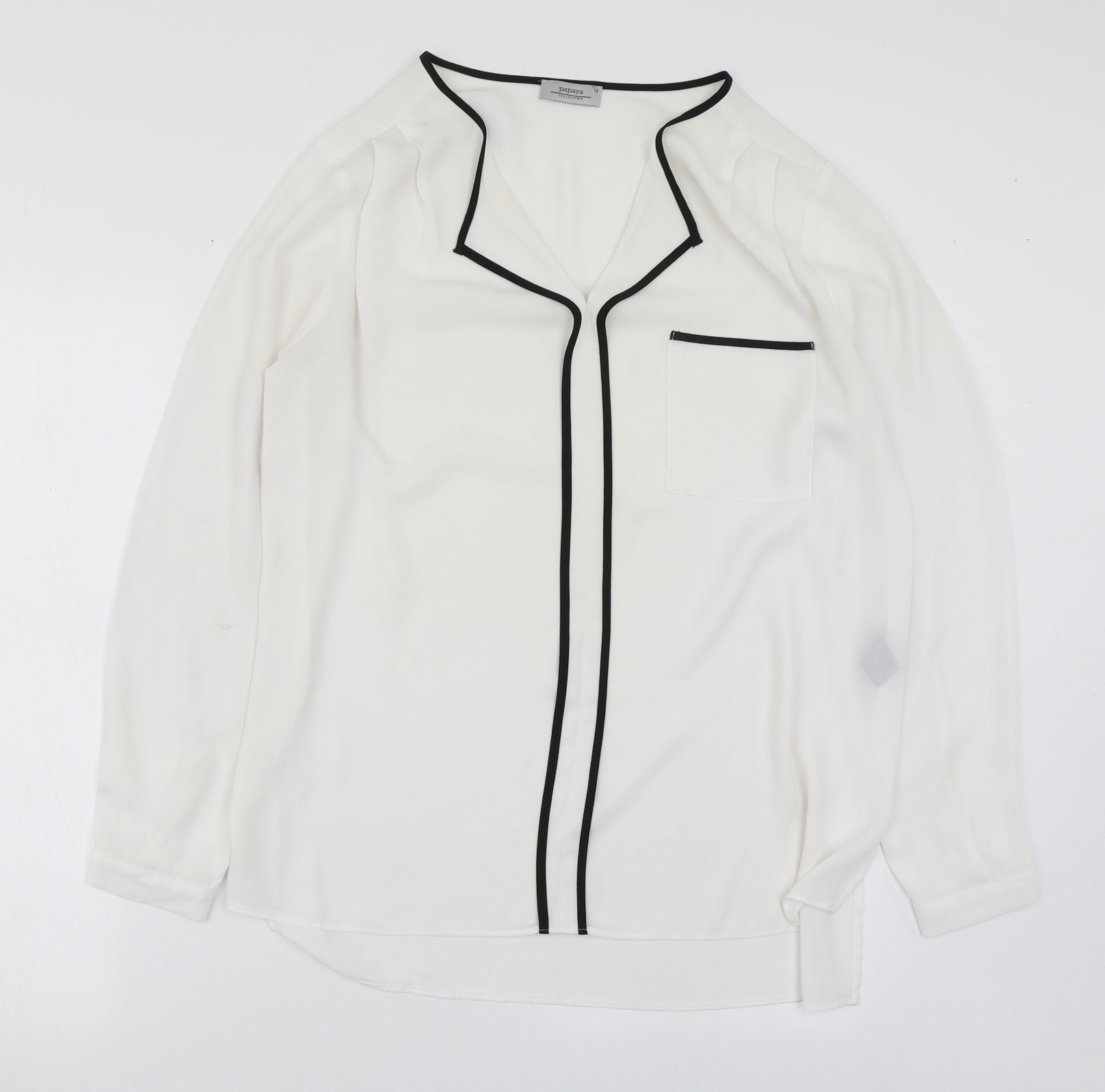 Papaya Womens White Polyester Basic Blouse Size 12 V-Neck