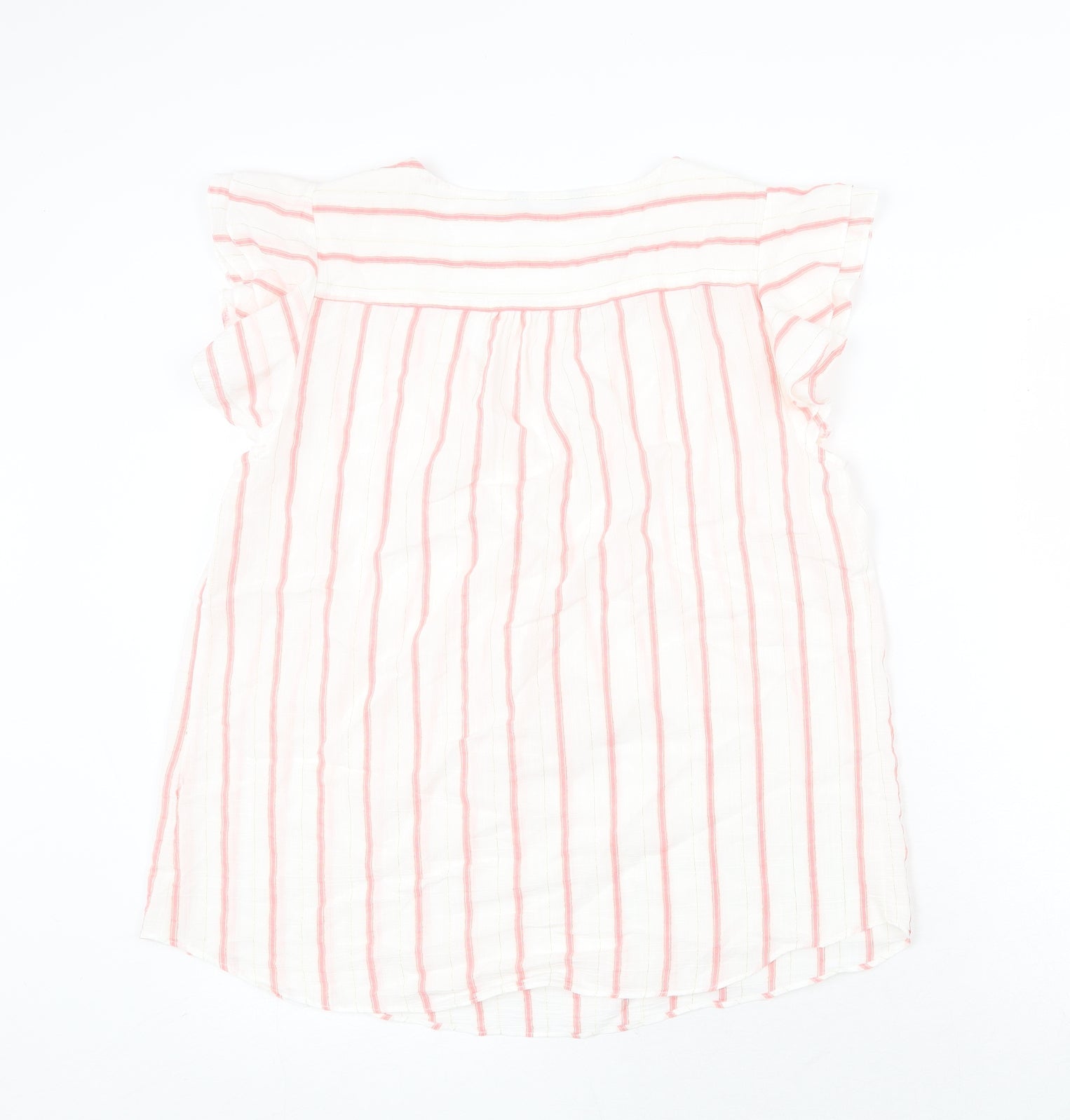 Papaya Womens White Striped Polyester Basic Blouse Size 12 V-Neck