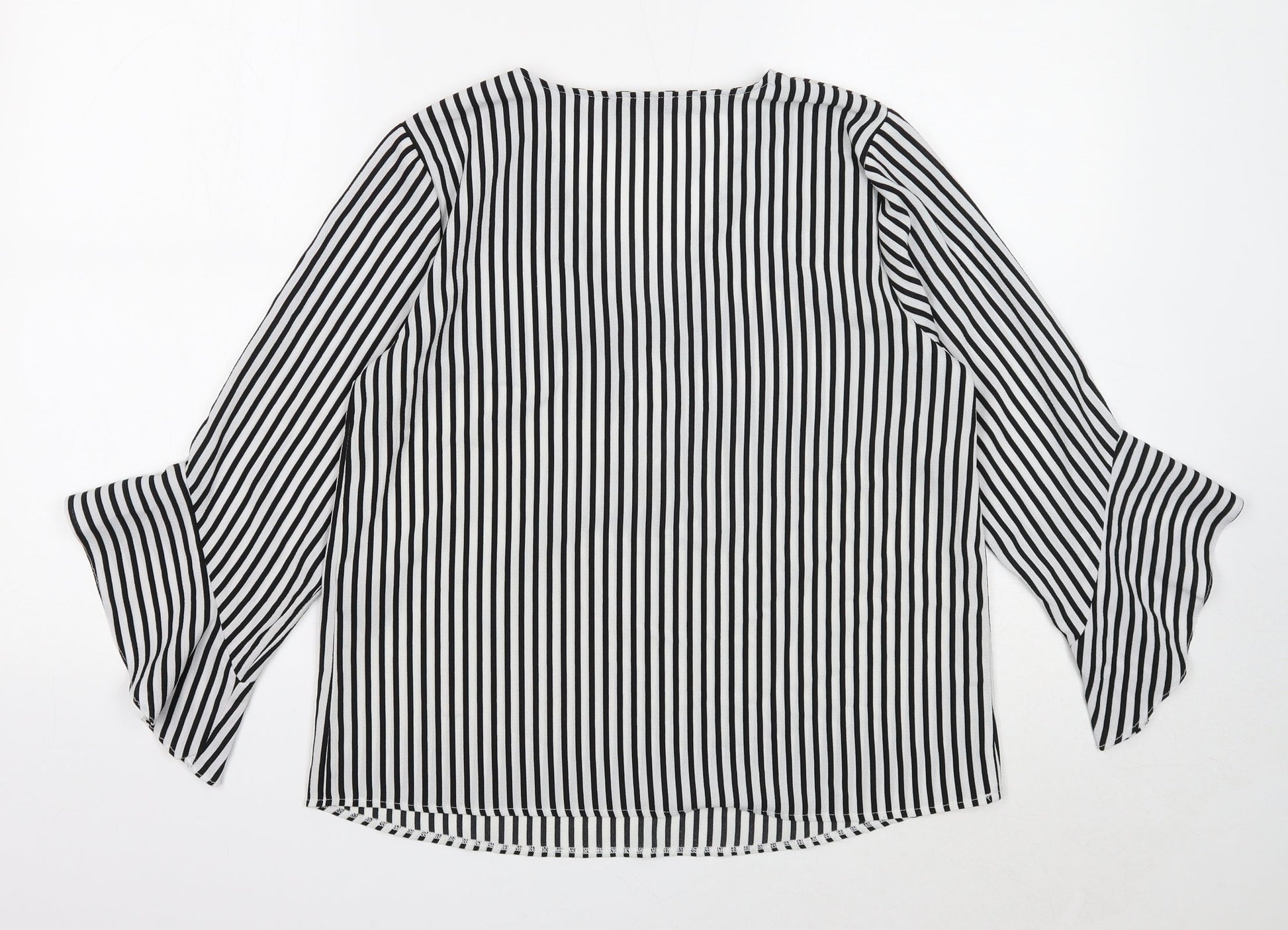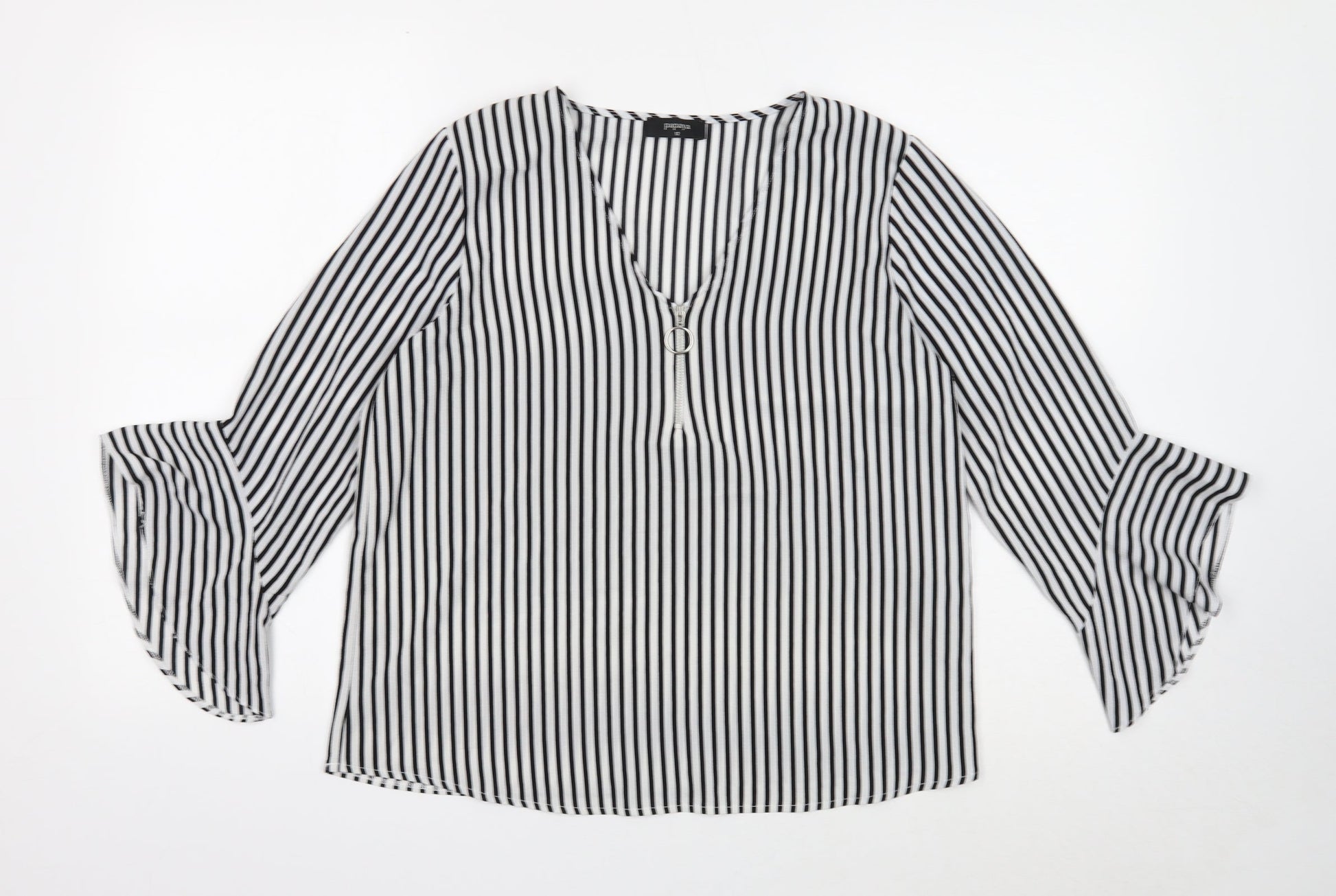 Papaya Womens White Striped Polyester Basic Blouse Size 12 V-Neck - Ruffle Cuff