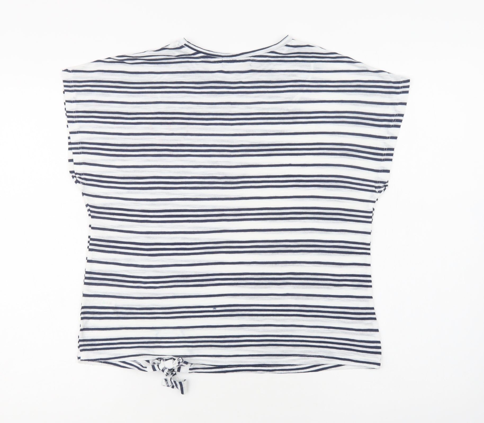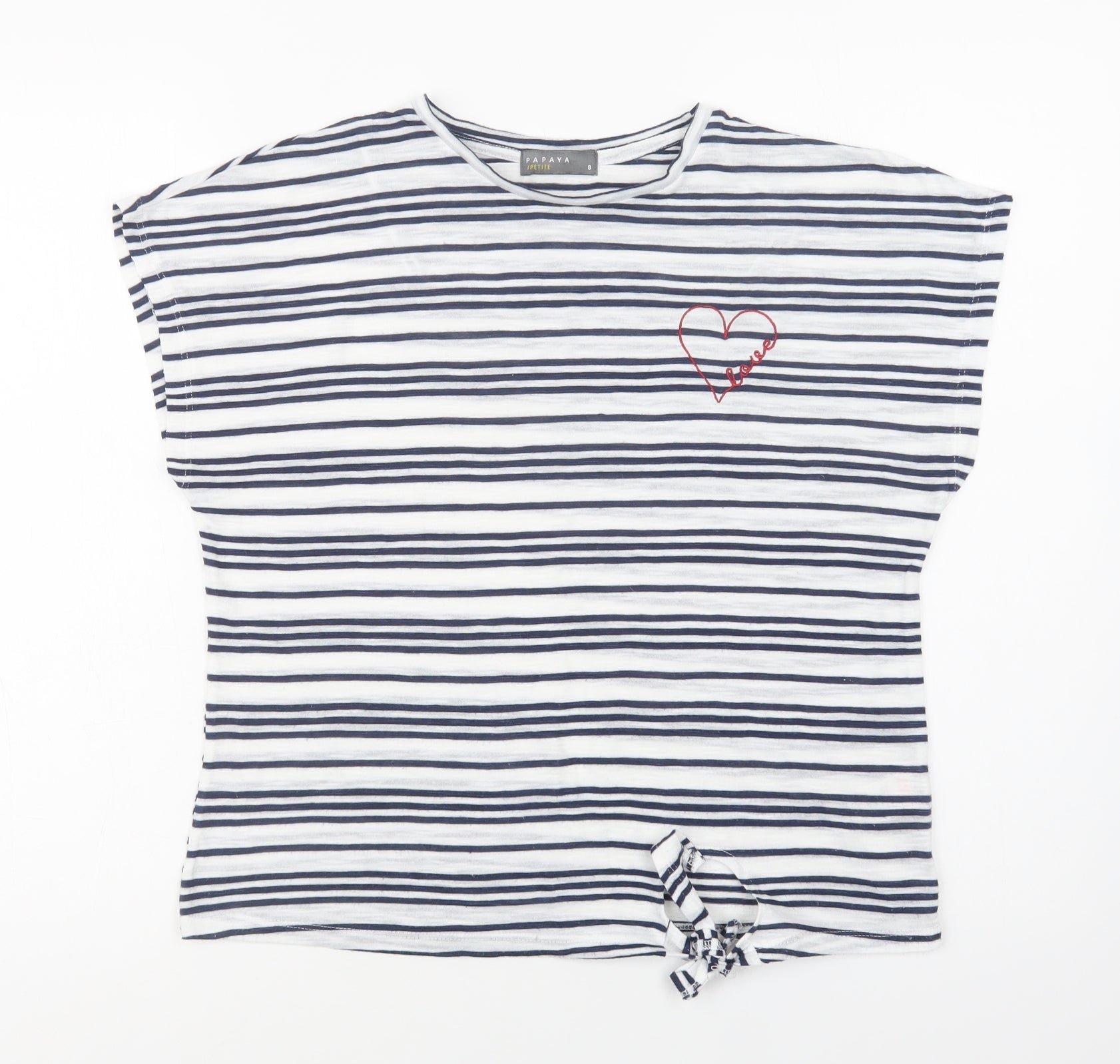 Papaya Womens White Striped Polyester Basic Blouse Size 8 Crew Neck