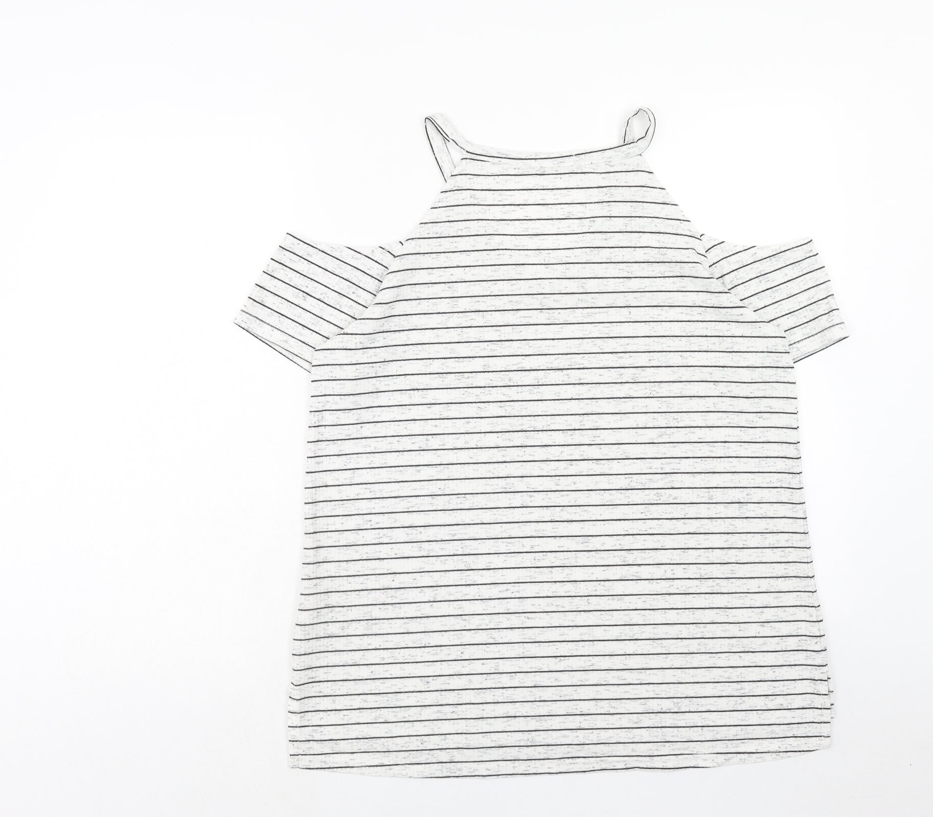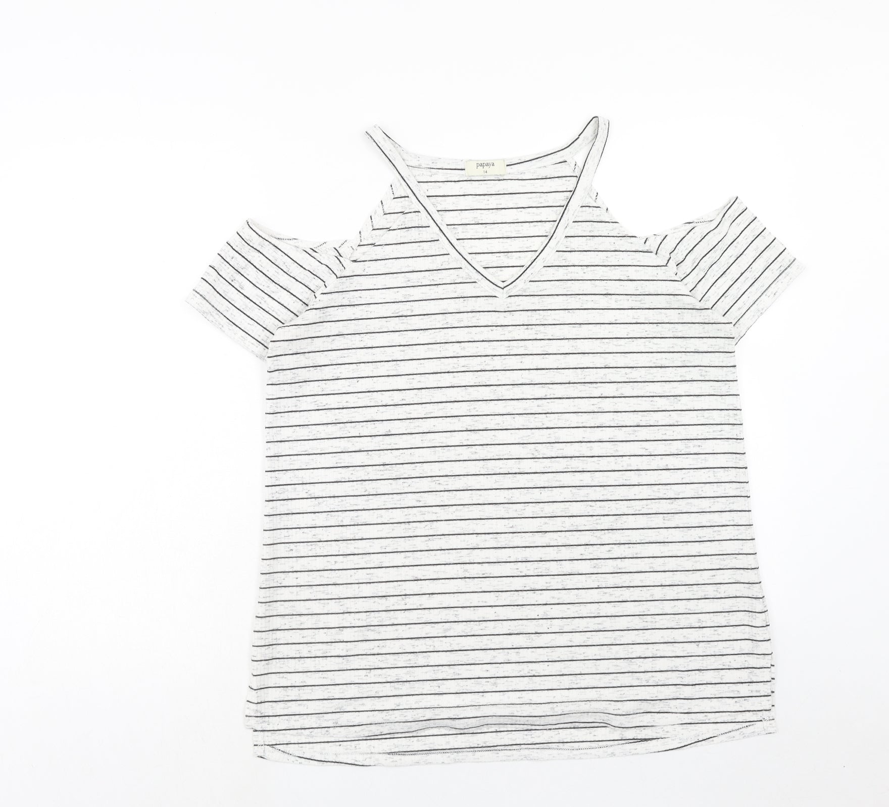 Papaya Womens White Striped Polyester Basic T-Shirt Size 12 V-Neck - Cold Shoulder
