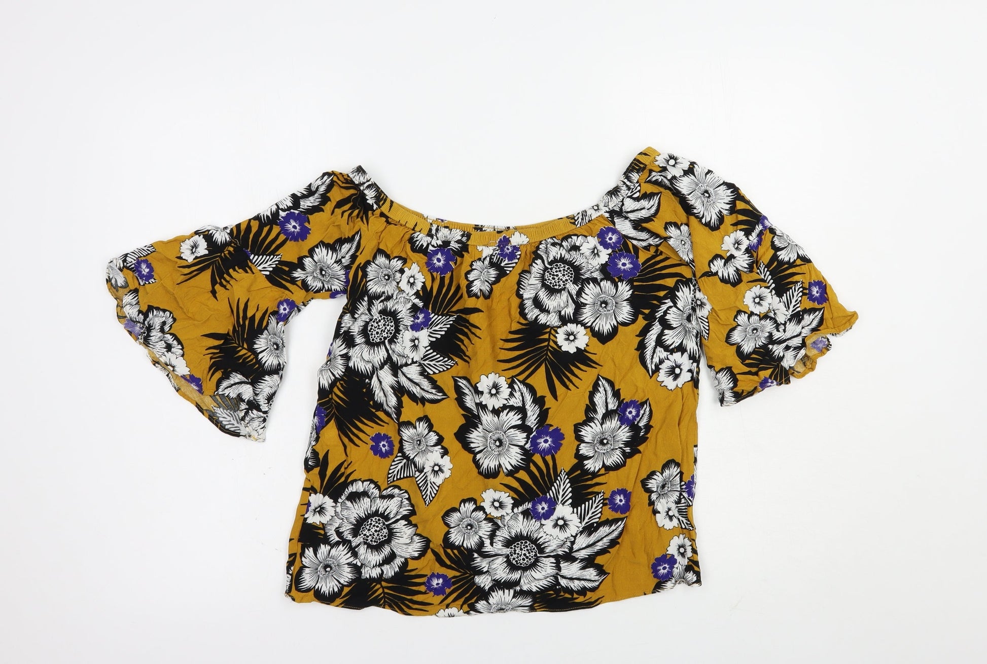Papaya Womens Yellow Floral Viscose Basic Blouse Size 10 Off the Shoulder