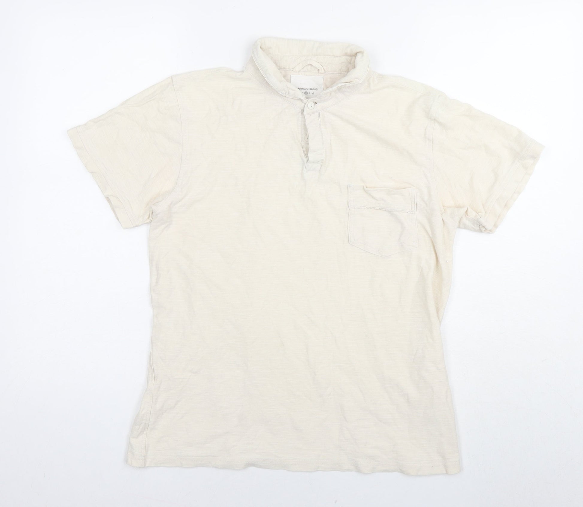Paper Denim & Cloth Mens Ivory Cotton Polo Size M Collared Pullover